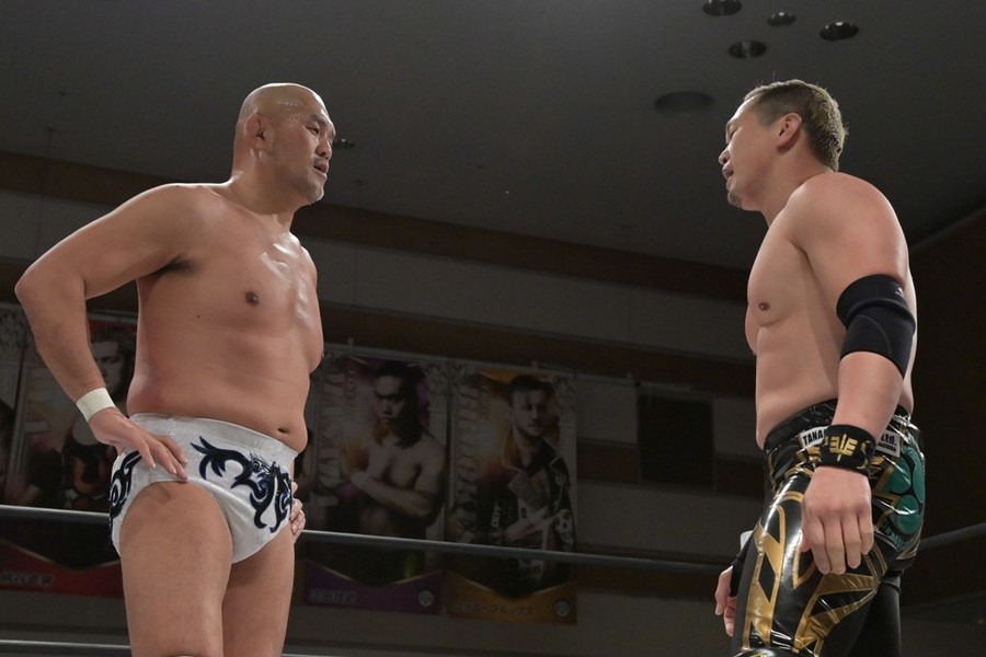 しかし、今回のタイトルマッチは、そんな私的な感情だけで実現するのではない。秋山はEXTREME王者になって以降、スーパー・ササダンゴ・マシン=トントン相撲、アントーニオ本多=モノボケデスマッチ、彰人=環境利用闘法マッチと、自らのフィールドを広げる防衛戦を続けてきたが、DDT26周年記念という舞台で、あえてジャイアント馬場から継承してきた正統プロレスを見せようというのだ。その相手にふさわしいとして逆指名したのが三沢が手塩にかけた鼓太郎だったということだろう。