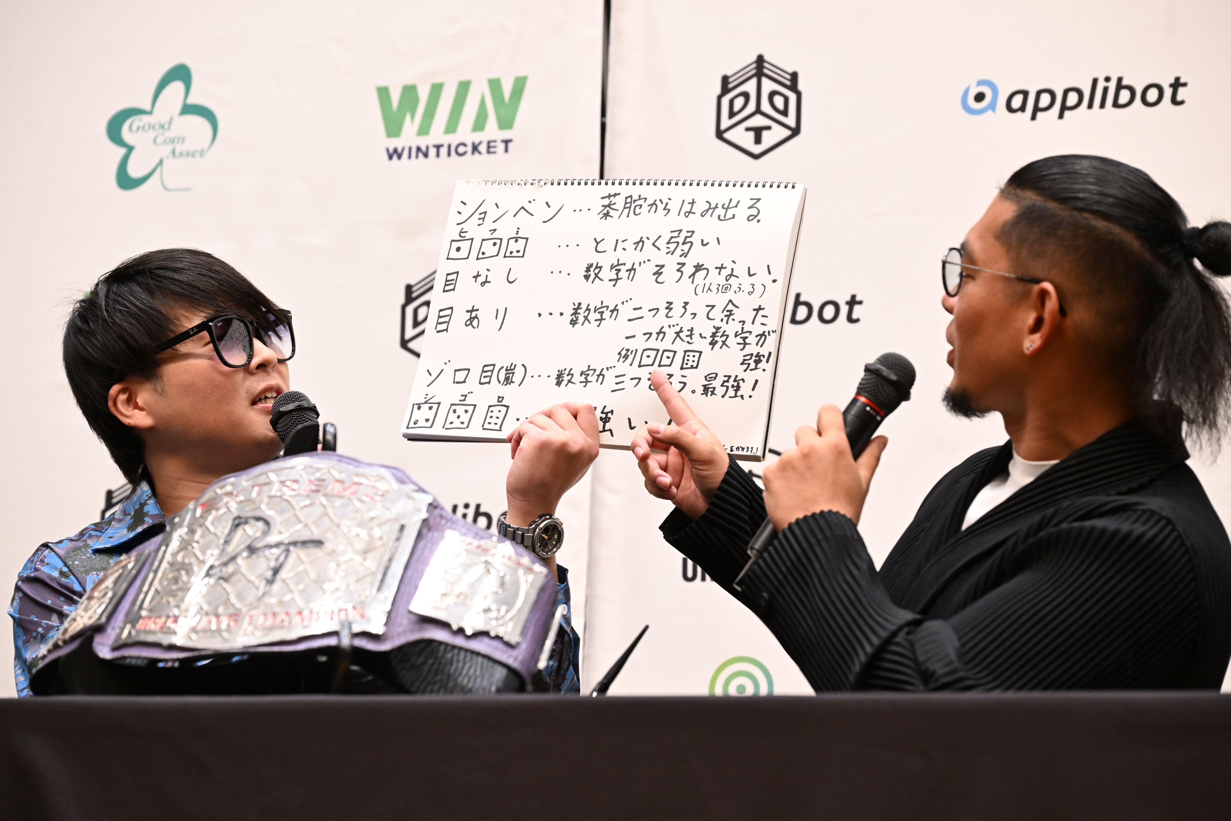 本来、同王座戦のルールは王者が指定できるが、すっかり“DDTのギャンブル狂”のイメージが定着したTo-yはサイコロ3個と茶碗を用いるチンチロで勝った者がルールを決めると言い出して、その結果、ササダンゴが勝者となった。