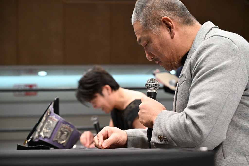 11月22日、神奈川・横浜ラジアントホール大会開始前に、11・30後楽園でのEXTREME選手権試合(王者=To-yvs挑戦者=髙木三四郎)の公開調印式が行われた。挑戦者の髙木三四郎が悲壮な決意を示した。