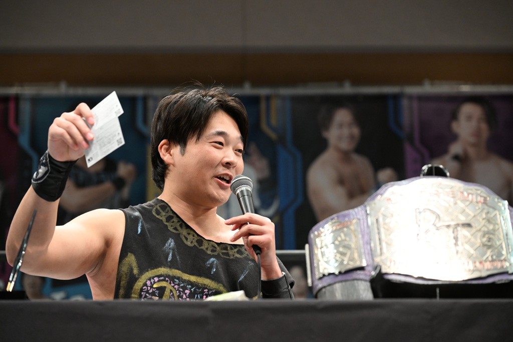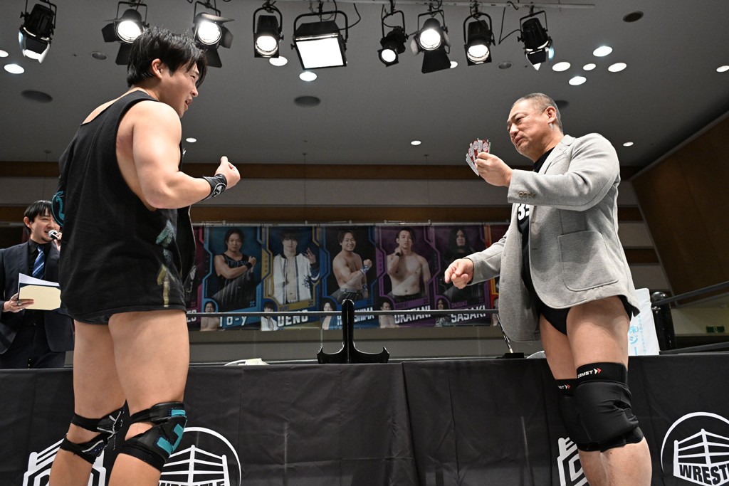 するとTo-yが「僕に勝ってチャンピオンになって、同じルールで対戦してくれるということですよね? その場合はいいですけど、巻き上げるのはちょっと…」と注文をつけると、髙木は「それは勝ってから話そう。それくらいの気持ちでタイトル戦に臨みます」と話した。
