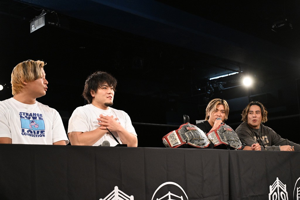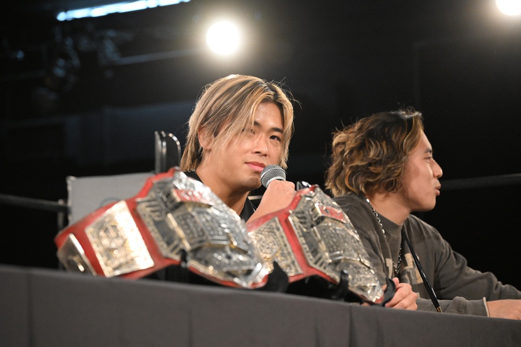 政岡「DDTに上がったときから、俺らの狙いはKO-Dタッグベルト。DDTには昔から親交のある奴とかいるから。ケガで休んでる奴とか、世界を股にかけてやってる奴とか。アイツらともやりたい。ベルトを獲ったうえで、そもそも俺らがこれに挑戦したいと思ったのは、今やから言うけど、この2人やったからや。正直、あの日(11・30後楽園)、おまえらが負けたらどうしようかと思ったよ。WRESTLE UNIVERSEで見てたよ。この先、こいつらがベルト持ってるDDTの未来より、俺らがベルト獲った未来の方がどうなるか分からなくてワクワクするはずや。おまえらは俺らだけ見とけばええんじゃ」