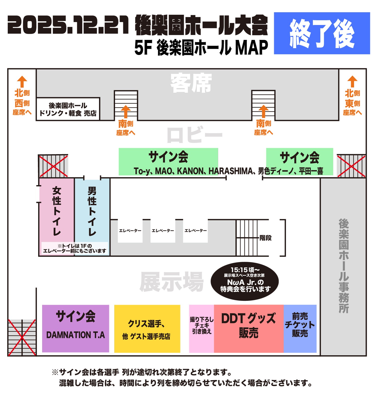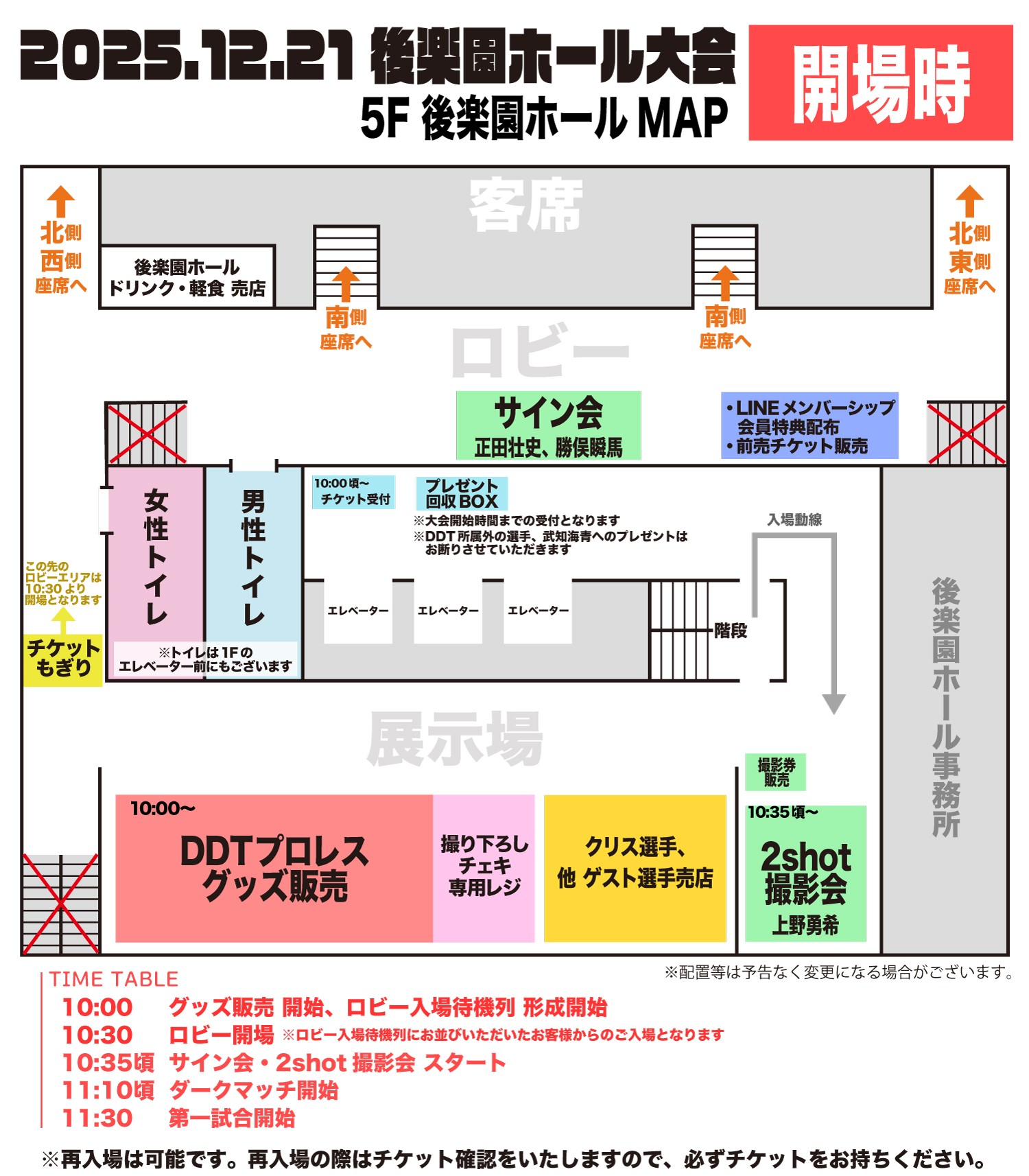 ※当日はスタッフの案内があるまで後楽園ホールビル内での待機は禁止とさせていただきます。ご協力お願いいたします。
