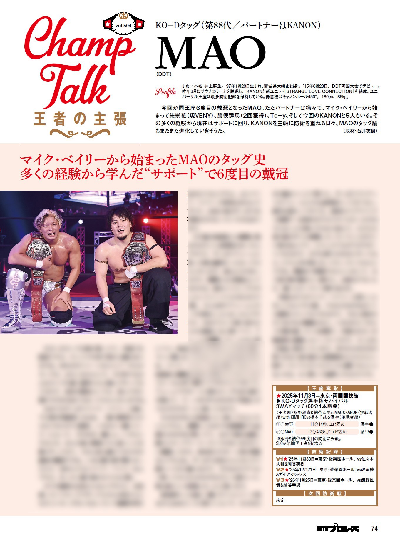 ・The37KAMIINA興行(2・14新宿)のリポートと、さらに「王者の主張」にはKO-Dタッグ王者のMAOが登場!