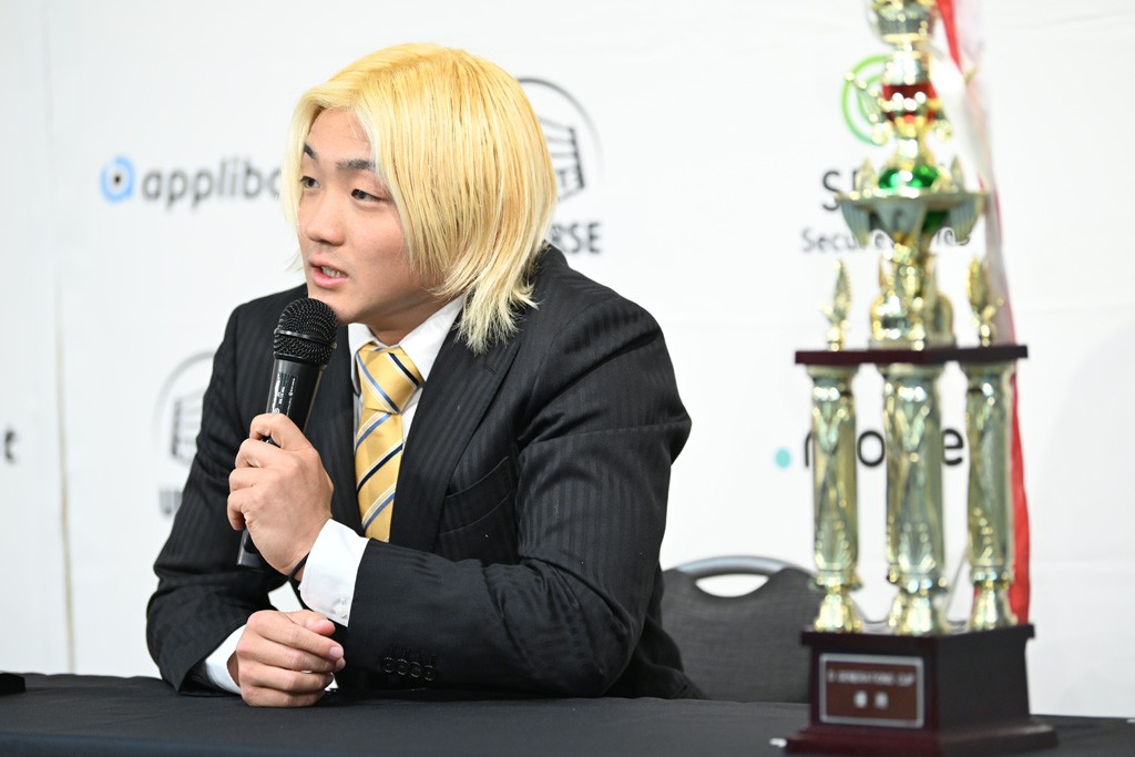 王座奪取後のチャンピオン像について、須見は「僕は自分自身にしかできないチャンピオンになりたいって言ってるんで。その今まで見たことないチャピオンになりたいなと思ってて。UNIVERSALの歴史を見てたら、今22歳なんで、僕が獲ったら最年少(戴冠)になるんで。最年少狙って、最多防衛記録狙っていきたいと思います」と夢を馳せた。