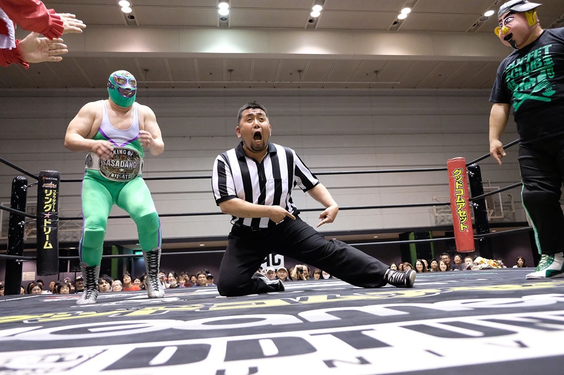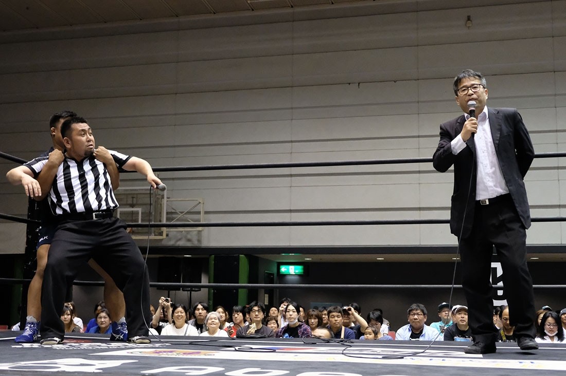 上野が欠場の挨拶、オープニングコールは主催者の松井レフェリーではなく……