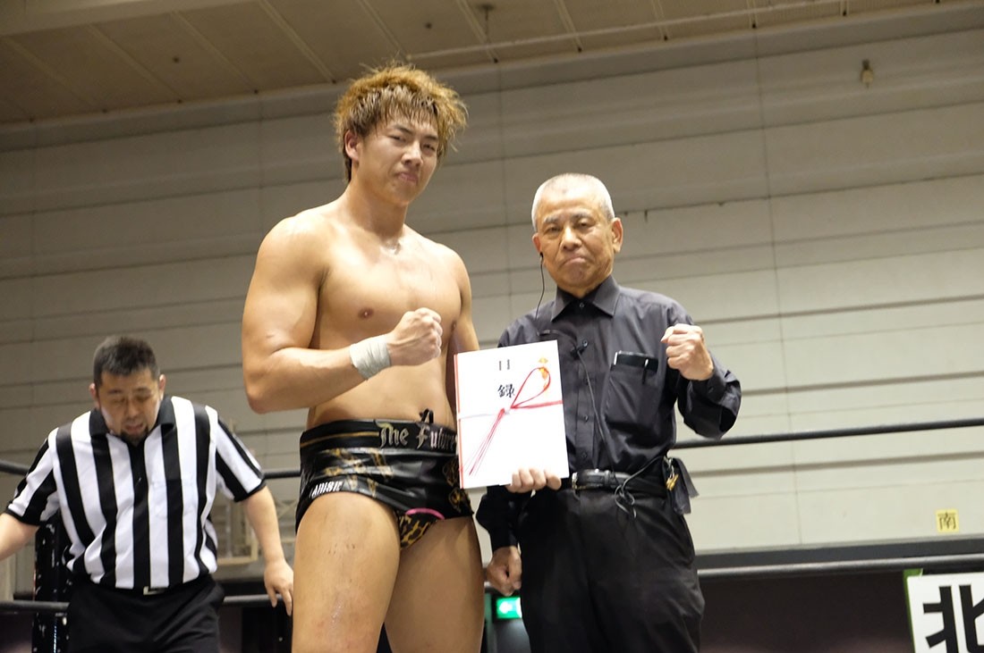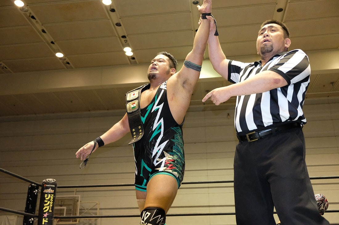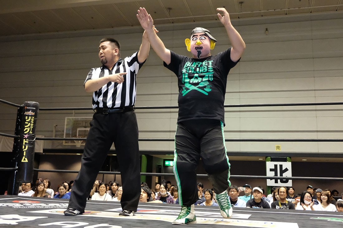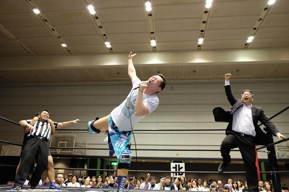 大人気なくベルトを奪った赤井からベルトを取り上げようとする大石。赤井はビッグブーツを叩き込むが、2発目をかわした大石が丸め込んでアイアンマンを奪回した。その後、本部席ではトランザム★ヒロシがASKAの『MY Mr.LONELY HEART』をアカペラで歌って締めくくった。