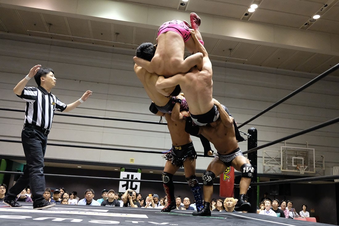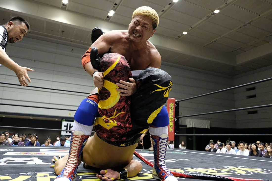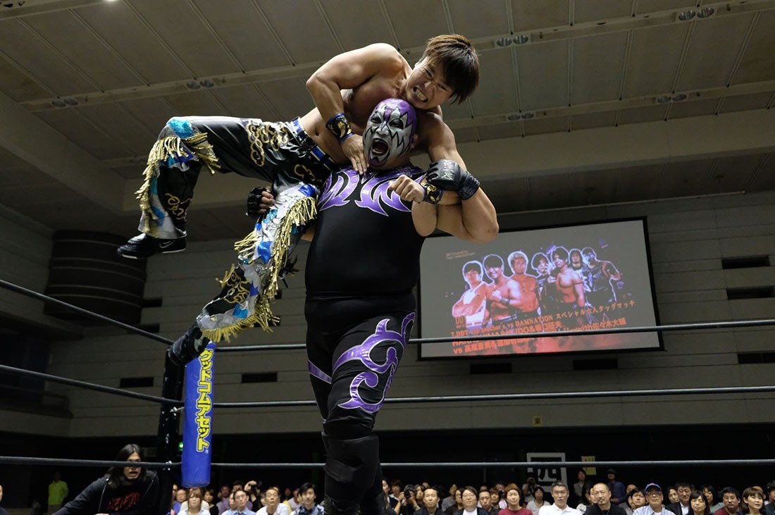 ※変形フェースバスター。あとの2組は石井慧介&梅田公太、マイク・ベイリー&MAO。