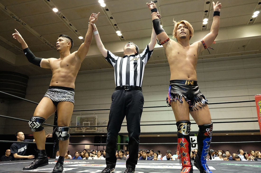 彰人 まずタッグタイトル獲ってもらって、様子を見て6人タッグも狙い定めていきたいなと思っていますので。