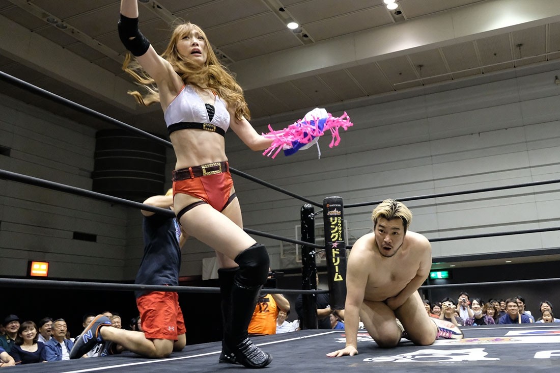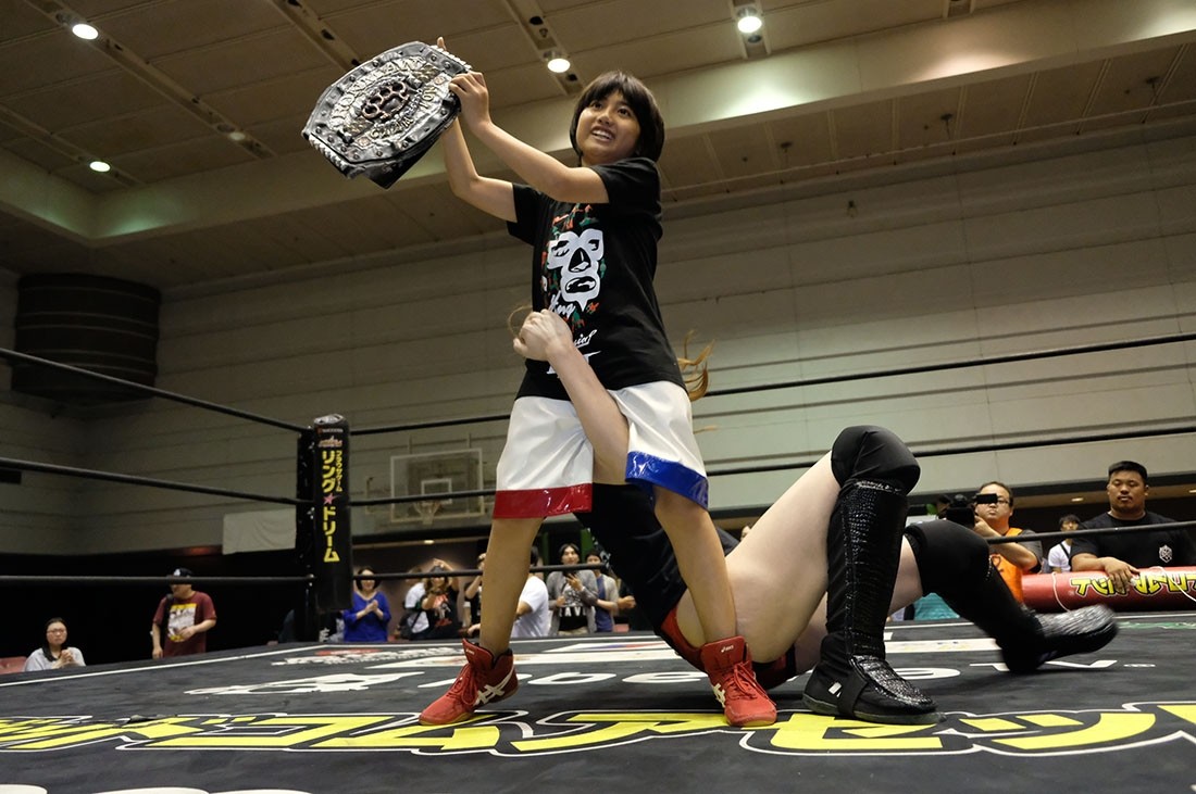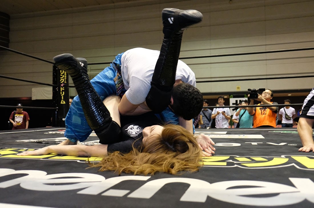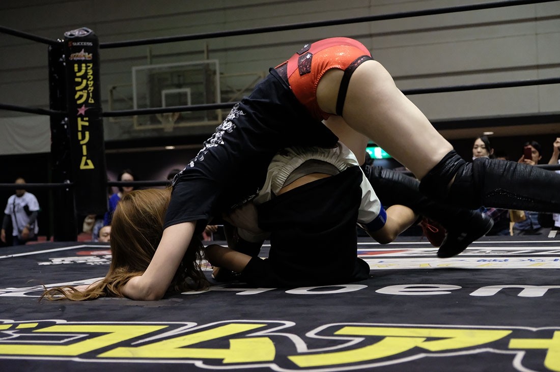 反則をしたゆにを怒る松井レフェリー。それを止めようとした大石だが、ゆには近づいてきた大石を丸め込んで3カウント。アイアンマン王座を奪取してみせた。