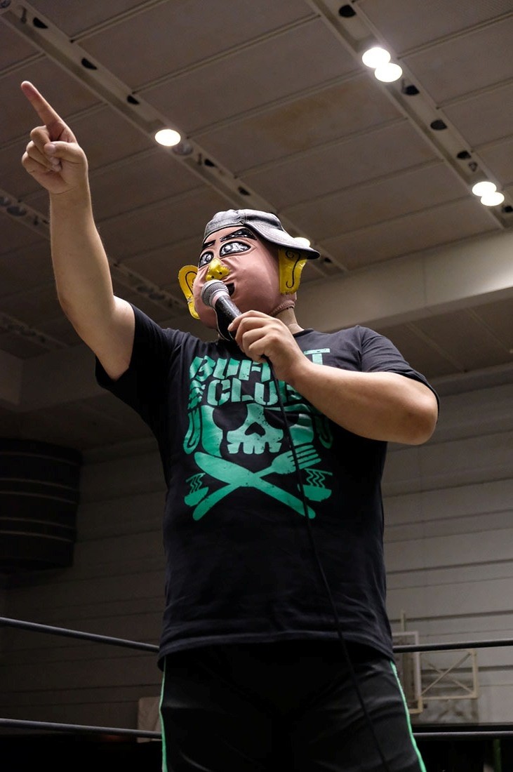 試合後に背後からササダンゴから悪質タックルを食らった菊タローだが、マイクを持つと「いまの日本人はストレスの発散を大いに間違っていると思います。会場に来れば生の興奮が待っています! ビールも生が一番だと思います!」と挨拶するが、松井レフェリーが「もういいんじゃないか? 帰ろう」とストップをかけたため、菊タローは「9月まで頑張って(耳の)手術をしたいと思いますので、とりあえずTシャツ買ってください!」と言っては売店へと移動していった。