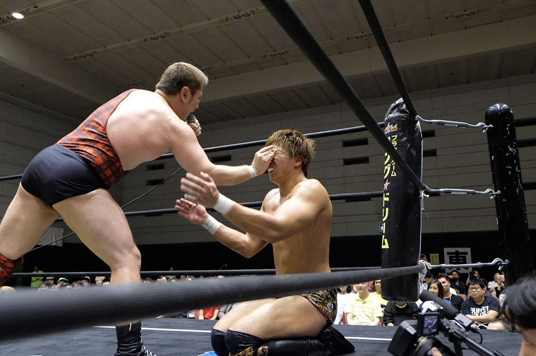 吉村 正直、曙とやったときみたいな心境もあったけど、俺はホンマに今日全部ぶつけたし、その上でアイツに殴り負けたのか……俺の全部受け止めた上で勝ったっていうのは、正直に受け止めて……。でも俺の全部が通用せんかったわけじゃないから。それでもまだパワーボム返されたけど、あれが決まっていたら分からんかったし。決まっていたら折れ、絶対勝っていたし。次やったら俺が必ずアイツから絶対に取ったるから。また何回でも組んでくれよ。俺が絶対アイツのことぶっ倒したるから。以上。