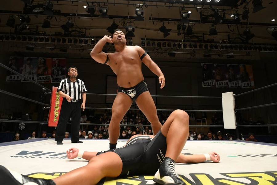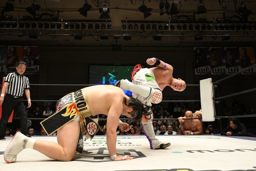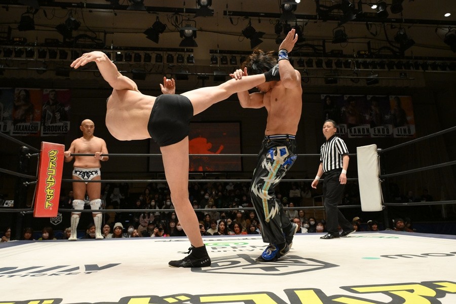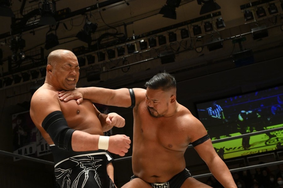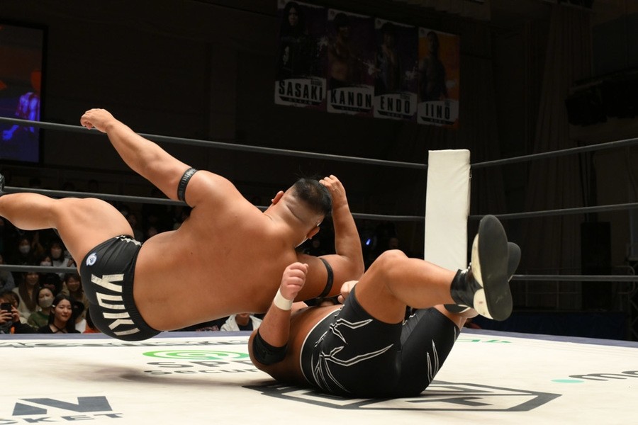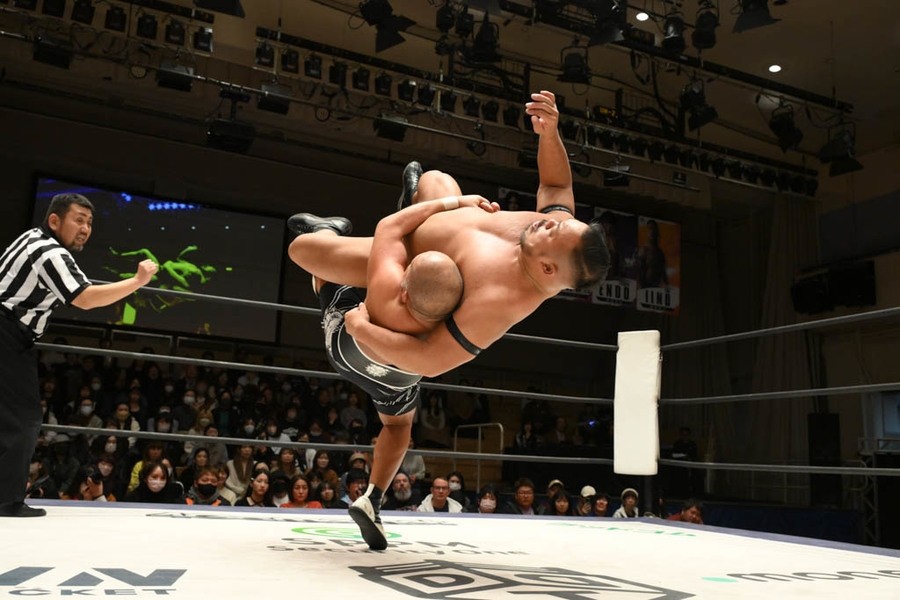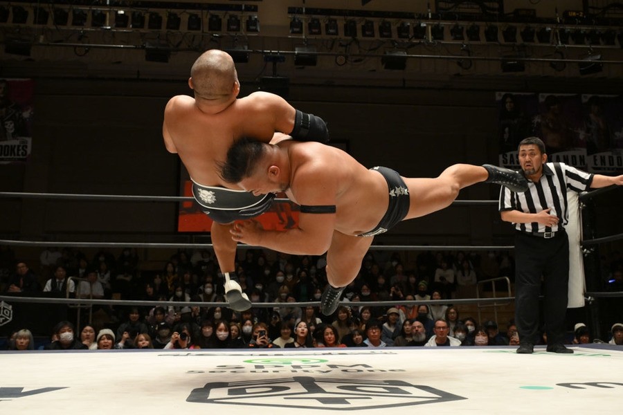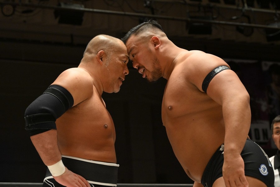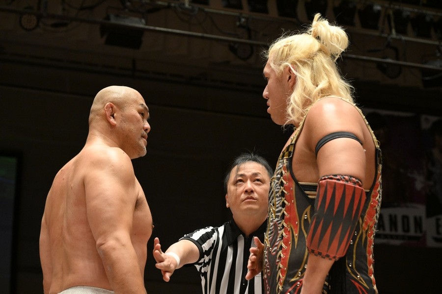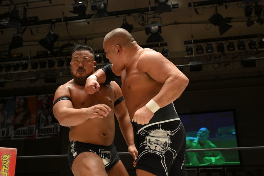 飯野雄貴が石井智宏(新日本プロレス)との一騎打ちに臨み、ヘビー級の肉弾戦を展開するも惜しくも敗れた。