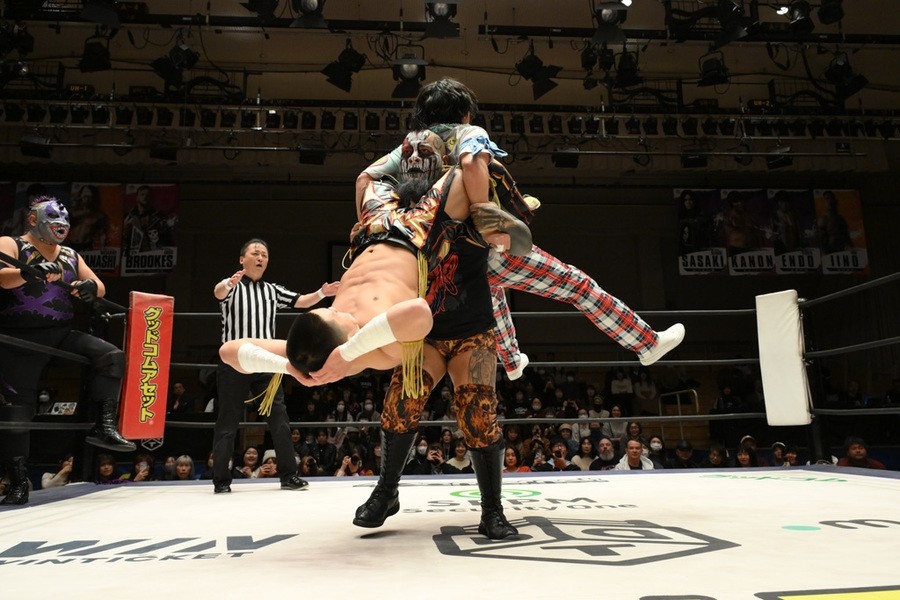 この日、クリスは高梨将弘とのCDKで出陣し、佐々木はKANONと組んで対戦。DAMNATION T.Aのセコンドが再三介入したが、ベストタッグのCDKは抜群のコンビネーションで対抗。10分過ぎ、DAMNATION T.Aのセコンドがレフェリーの足を引っ張って場外に落として乱入。しかし、SCHADENFREUDE Internationalのセコンドもすぐさま入り、佐々木にトレイン攻撃、4人でトラースキック。クリスは佐々木の脳天をイスで殴打すると、ツームストーン・パイルドライバー、必殺のプレイングマンティスボムで完全無欠の3カウントを奪取。12・11新宿で佐々木にしてやられた借りをキッチリ返した。