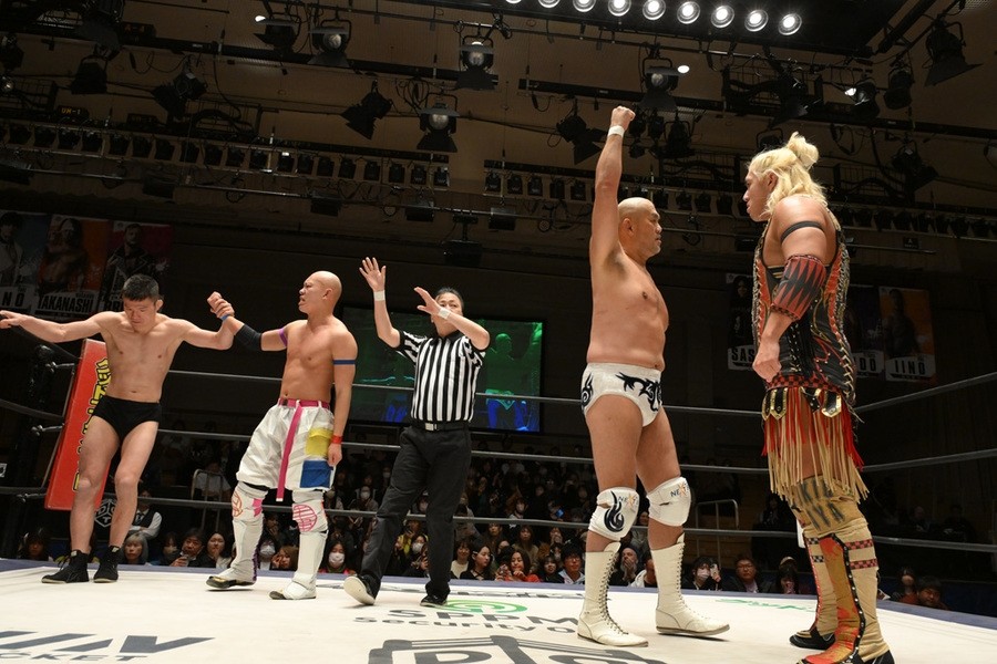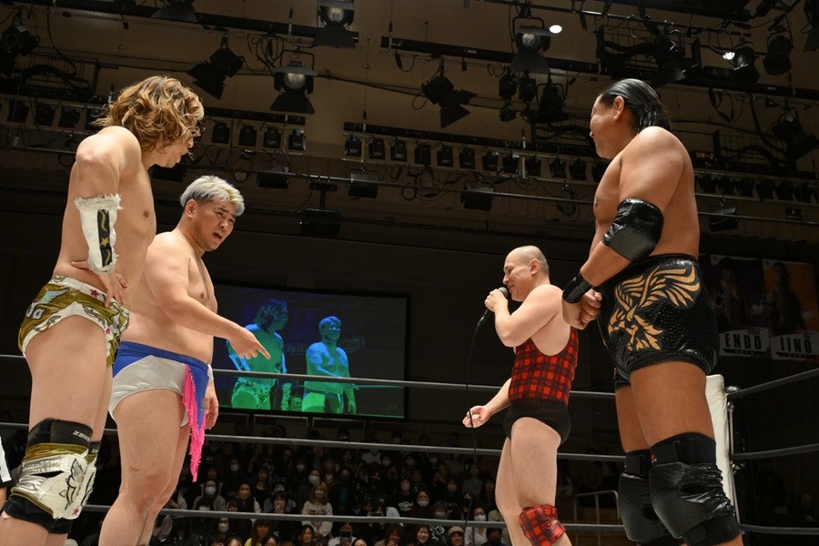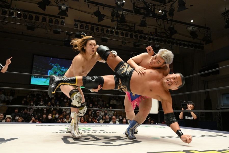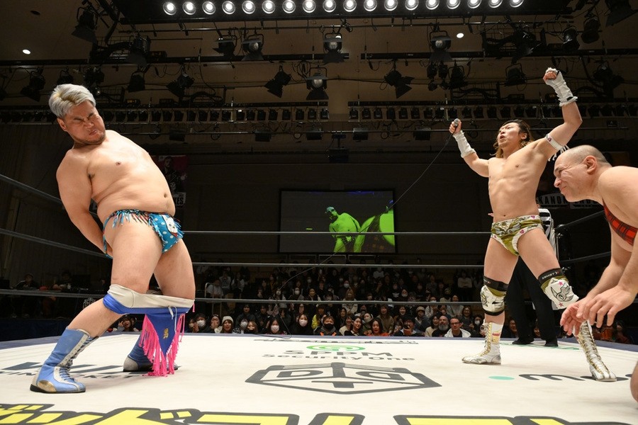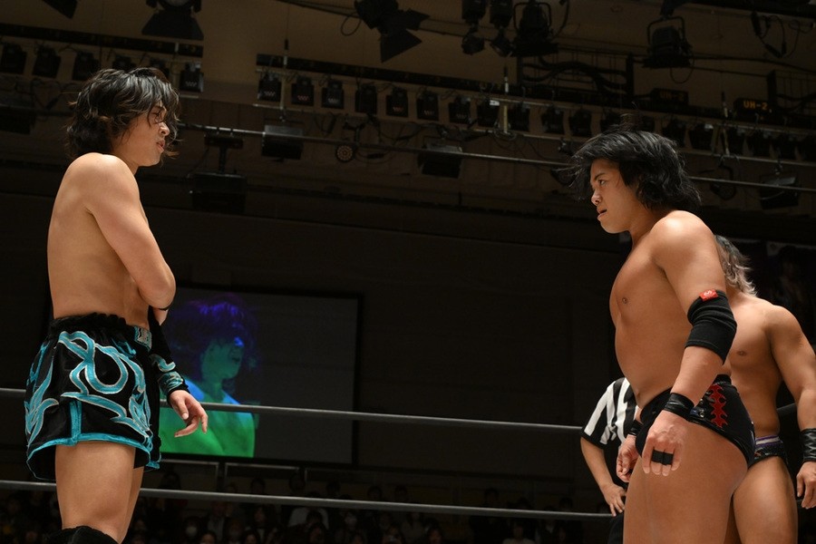 遠藤、高鹿は彰人とのトリオで、MAO、To-y、高尾蒼馬組と激突。気合が入った高鹿は高尾にトペを敢行。遠藤はMAOにサスケスペシャルを投下すると、遠藤と高鹿は合体式のニードロップをTo-yにぶちかます。高鹿とTo-yがエルボー合戦で意地の張り合い。To-yが高鹿にドロップキック、不思議の国の小嶋~コジマワンダーランド~、コジマインパクトとたたみかけるも遠藤がカット。高鹿はTo-yの左腕をつかむと強引にチキンウイング・アームロックへ。耐えたTo-yだったが、危険とみなしたレフェリーが止めて、高鹿がついに前哨戦初勝利を奪った。