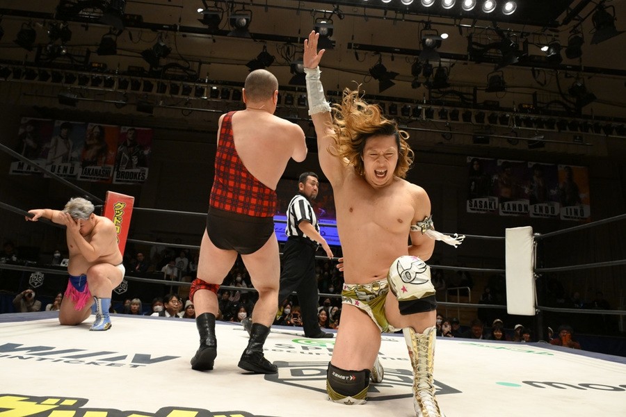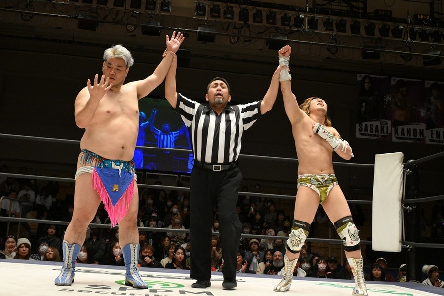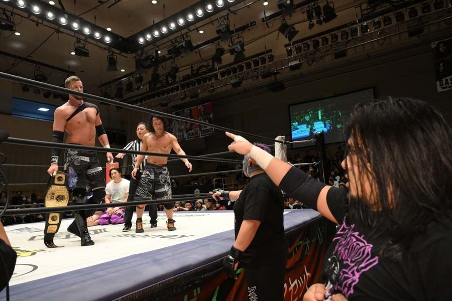 一方、佐々木は「今日はてめえの勝ちかもしれねぇけど、お陰でおまえの技は、この体が吸収して、すべて見切らせてもらった。今日食らった技を消化して、両国でチャンピオンになるのはこの俺、佐々木大輔。てめえがチャンピオンでいられるのはあと6日だけ。両国終わったら、荷物まとめて、とっととイギリスに帰るんだ。このDDT、2025年は俺たちDAMNATION T.Aのものだ!」と強気だった。