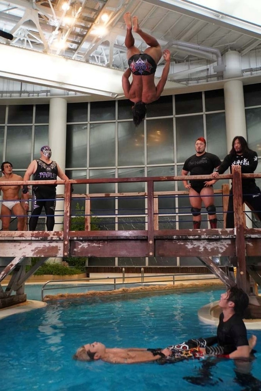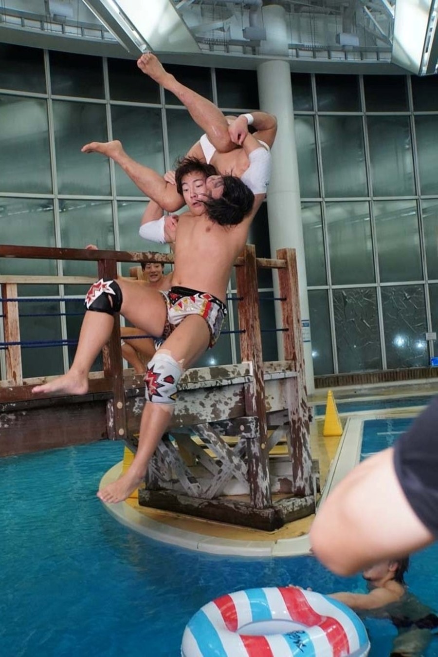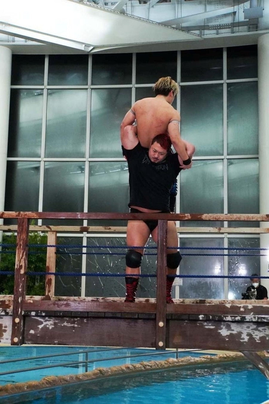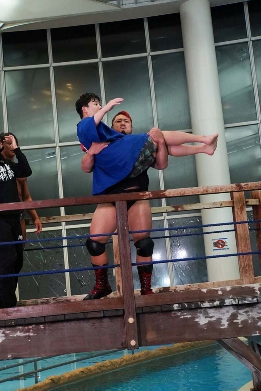 DAMNATIONが勝ち名乗りを受け、おたけさんから現金を強奪。そして佐々木が「DAMNATION新メンバー、俺の軍人時代の仲間、火野裕士!」と紹介。12月27日後楽園からの参戦を電撃発表した。さらに火野は許しを請うおたけさんを桟橋からプールに投げ捨てると、DAMNATION一同は高笑い。