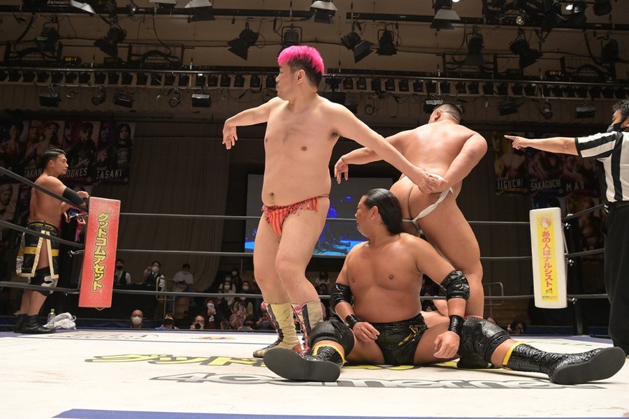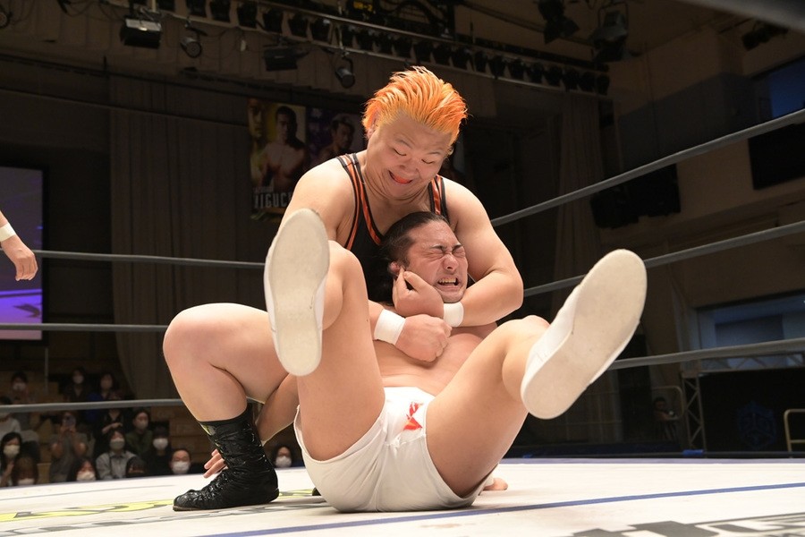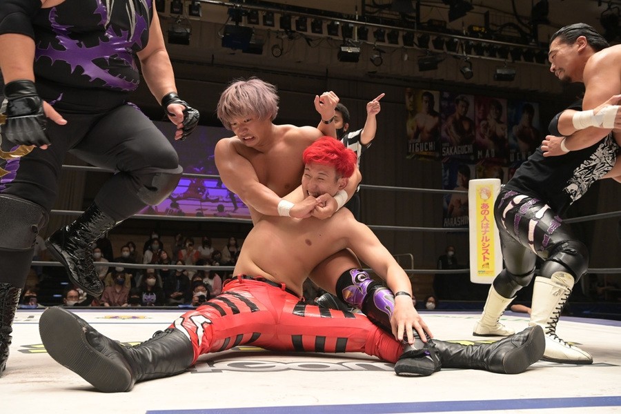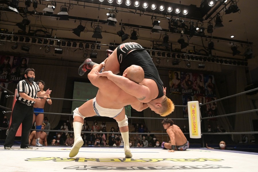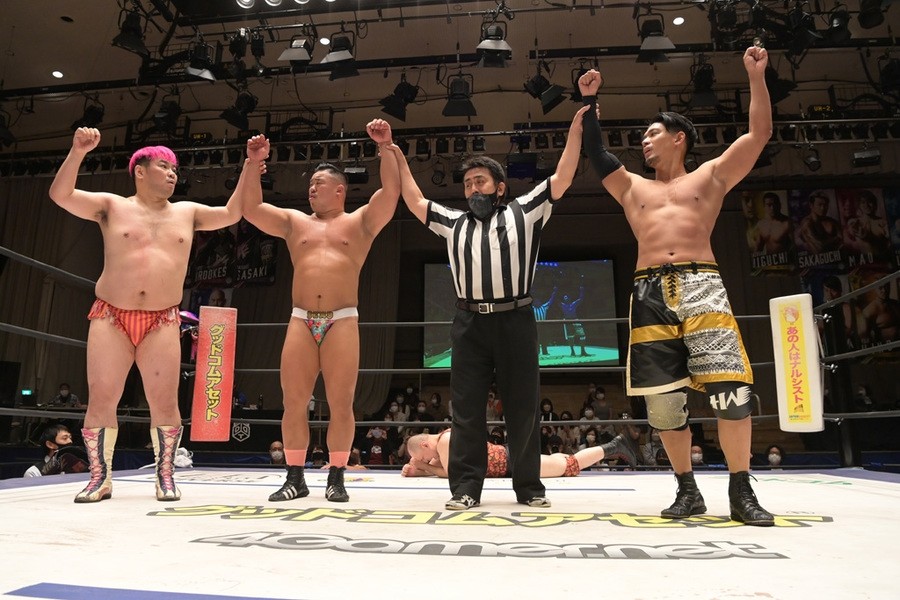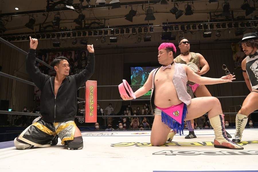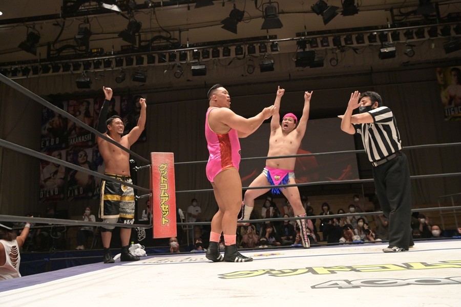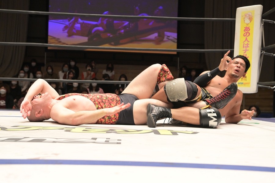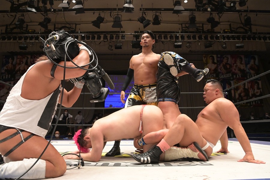 ところが、彰人はディーノからお下劣殺法に誘われても加わらず、マイペースの戦いぶり。最後は彰人が足4の字固めで本多からギブアップを奪い、試合は勝利した。