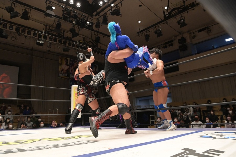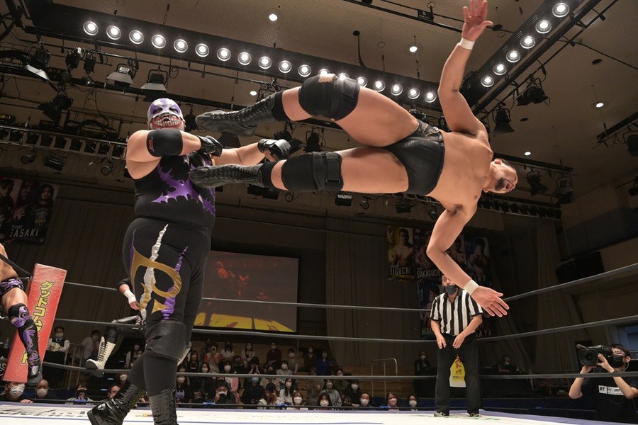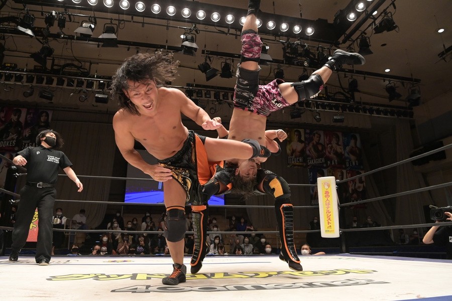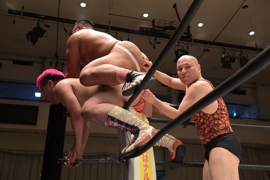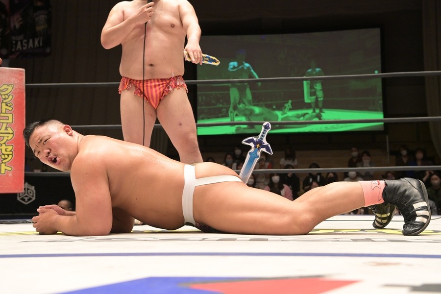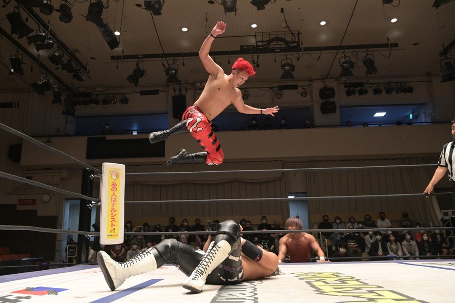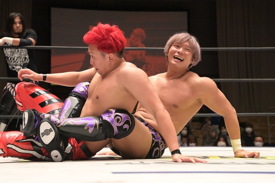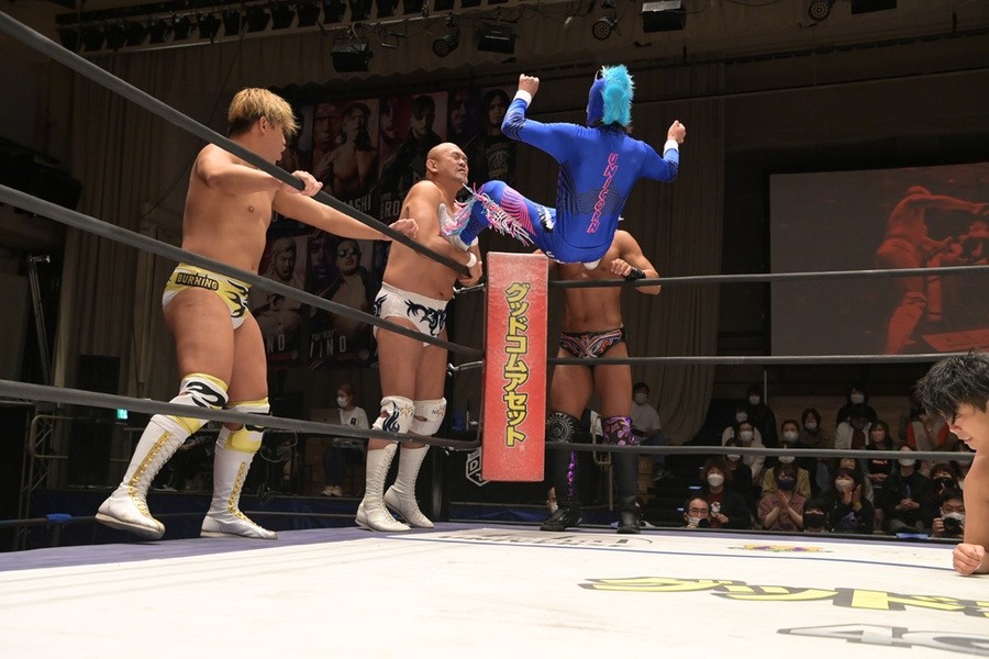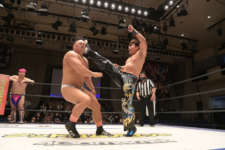 ところが、彰人はディーノからお下劣殺法に誘われても加わらず、マイペースの戦いぶり。最後は彰人が足4の字固めで本多からギブアップを奪い、試合は勝利した。
