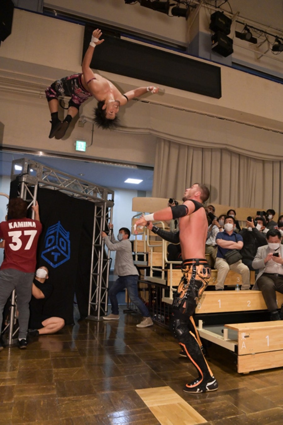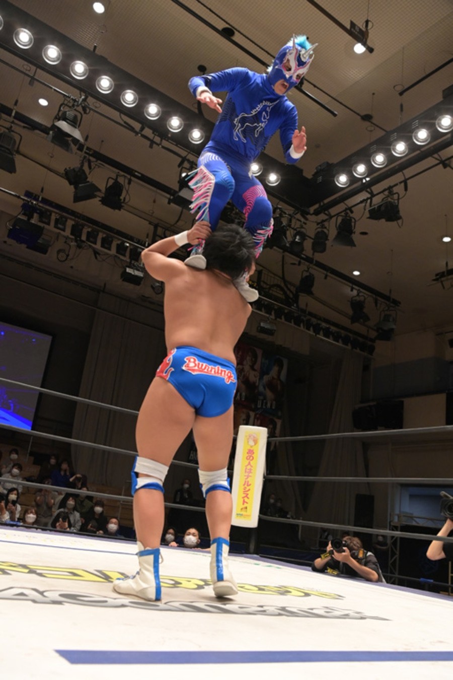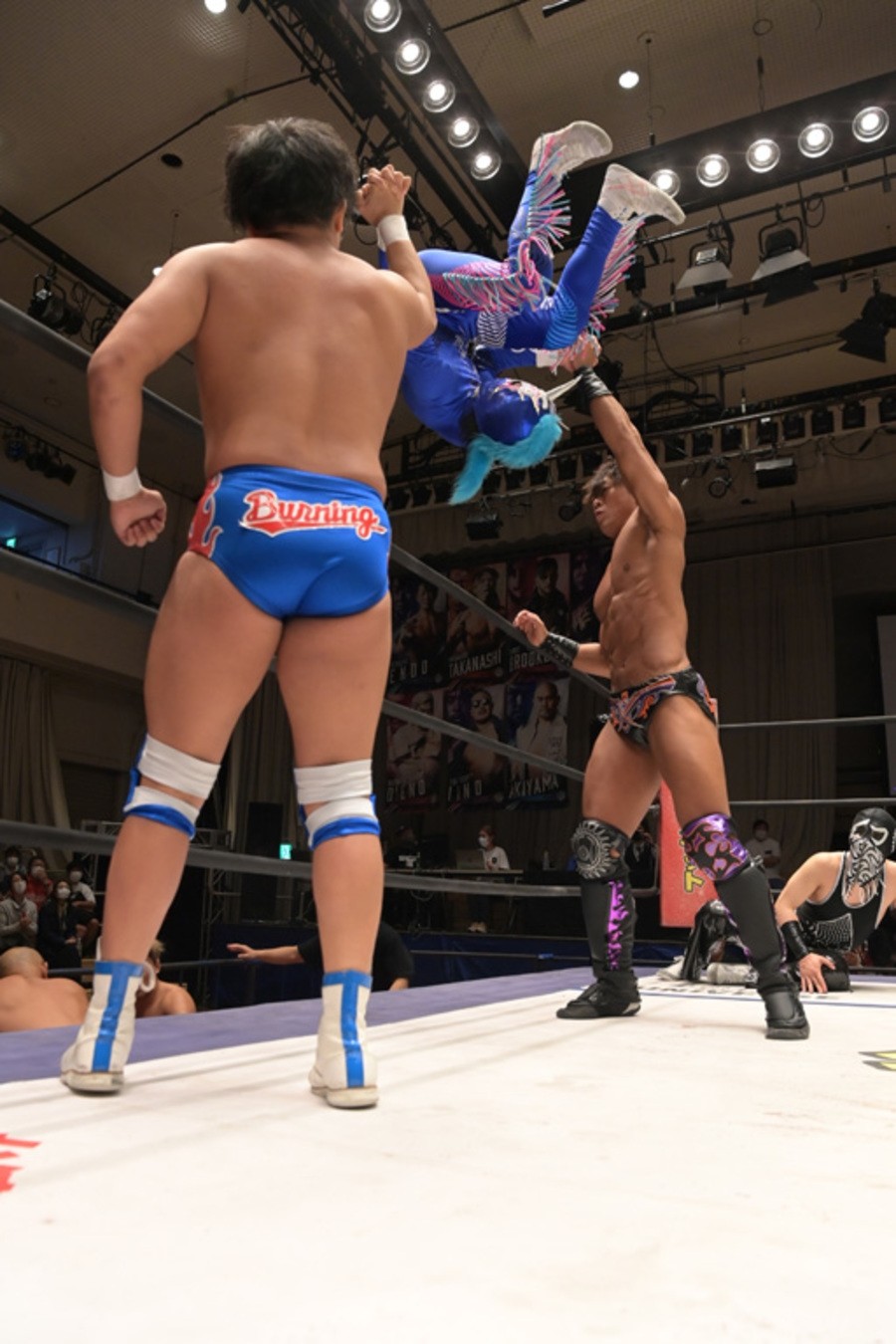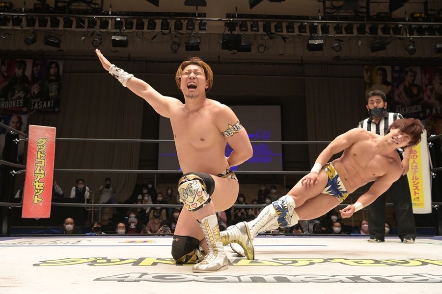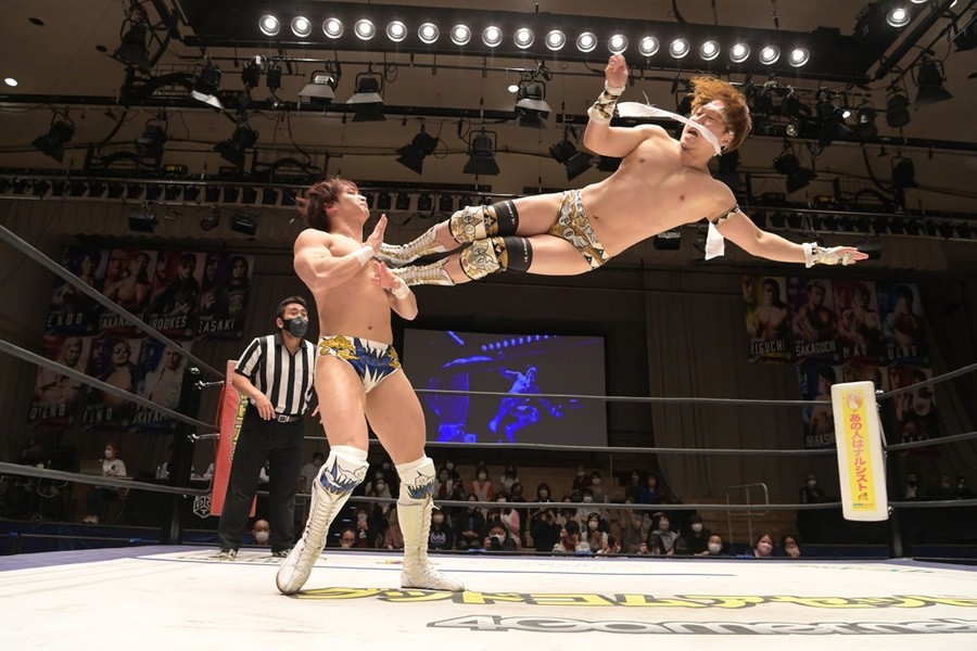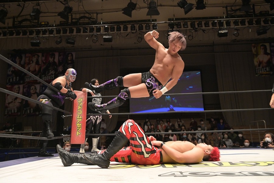 ところが、彰人はディーノからお下劣殺法に誘われても加わらず、マイペースの戦いぶり。最後は彰人が足4の字固めで本多からギブアップを奪い、試合は勝利した。