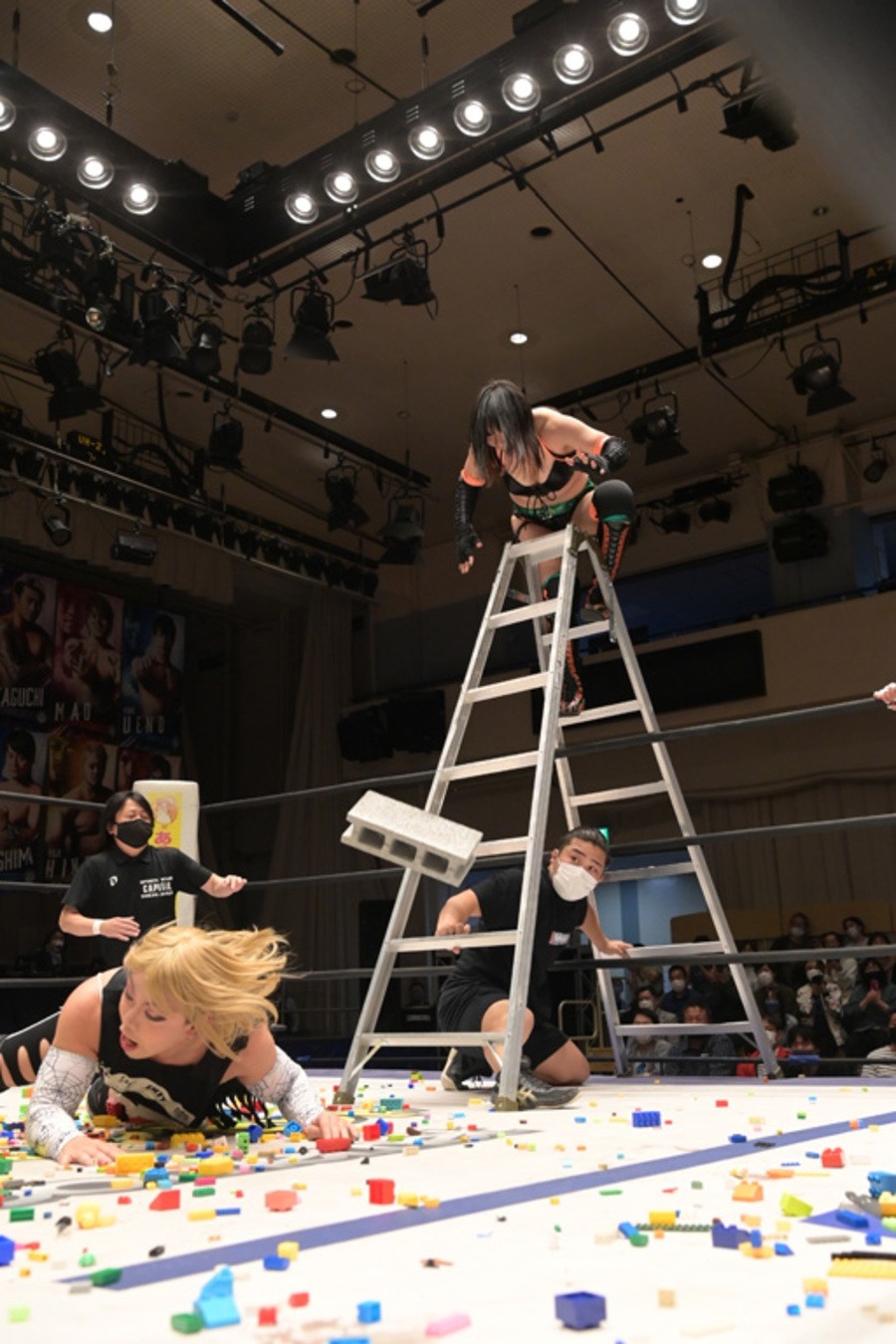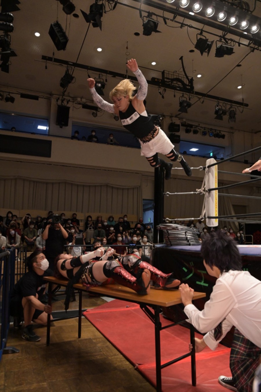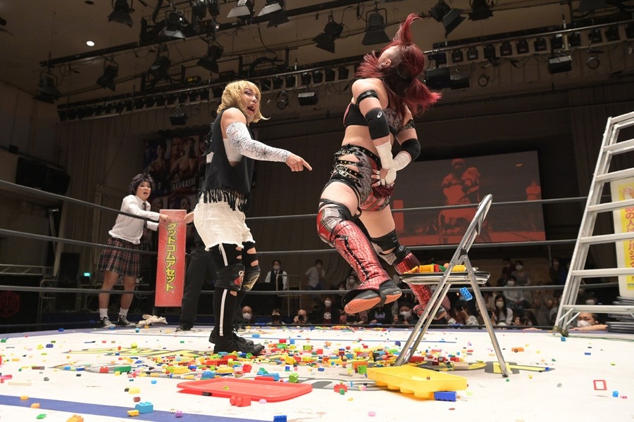 カルーセルは場外に設置したテーブルの上にすずを寝かせると、ととのえスプラッシュでクラッシュして先制。リング上には無数のブロック玩具がまかれ、四者とも受け身を取る度に悶絶。カルーセルは耳にピアスを開ける器具を取り出すも、プロミネンス軍に奪われて、カルーセル&エリザベスが犠牲に。カルーセルはブロック玩具付きバットですずを狙うも、エリザベスに誤爆。藤田が画びょうバットでカルーセルをぶっ叩くと、すずがエリザベスにジャーマンを決めて3カウントを奪った。