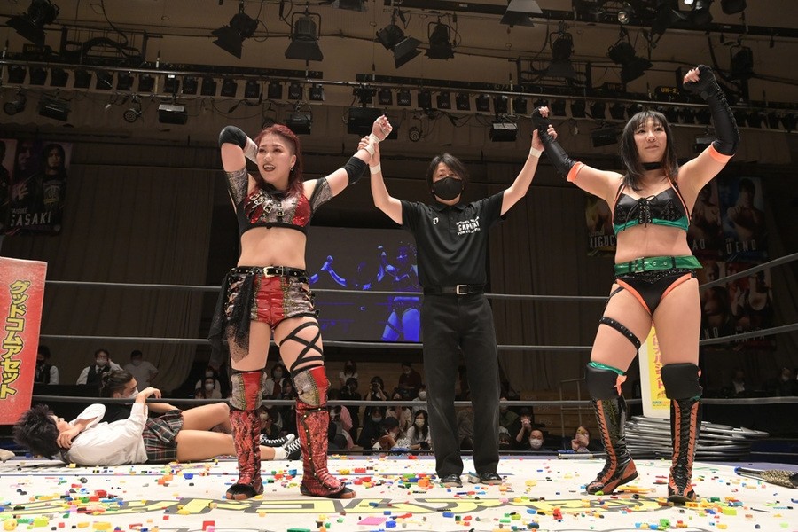 朱崇花は「思いがけず泣いちゃった。DDTのリングで泣くことになるとは思わなかった。即興タッグなのに、MAOちゃんとベルト巻けた。だから、すごいものをつくっていけるんじゃないかな」と笑みを見せた。