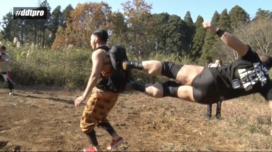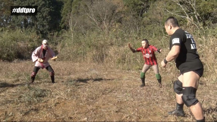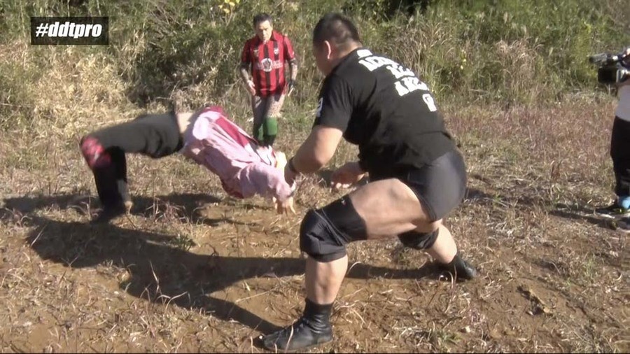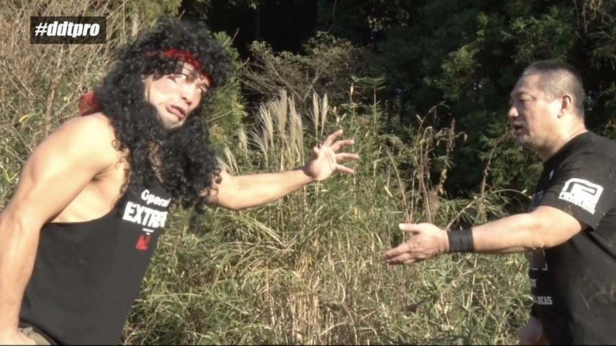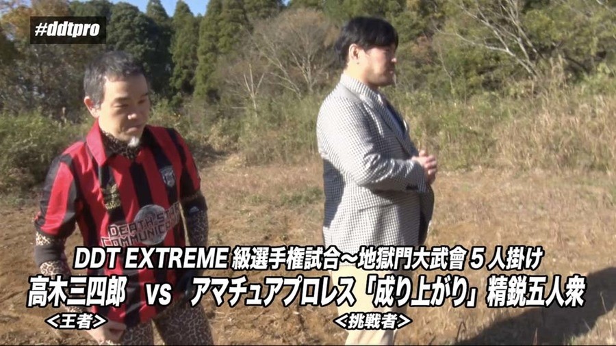千葉県山武市の山中にやって来たEXTREME王者・高木のもとに突如怪しげな男が現れ、地獄門へと案内する。地獄門と呼ばれる広大な広場にやって来た高木が成り上がりのメンバーを探していると、ディーノが現れる。しかし高木がレフェリーを連れて来ていないことに困惑するディーノ。どちらレフェリーを用意して来るべきかだったか押し問答をしていると、成り上がりメンバーのヘン・チーナが登場。レフェリーを務めることに。ディーノが1人目の挑戦者を呼び込むと、突如ハッピ姿に拍子木を鳴らしながら笛を吹きながら謎のマスクマンが現れる。タワラマチキッドJr.と名乗るその男が最初の挑戦者とのことで開始のゴング。山中ながら互いに腕の取り合いなどプロレスらしい攻防を繰り広げる。タワマラチがわっしょいエルボーという技からスペースローリングエルボーを決めるが、高木はスリーパーで捕獲。そのままドラゴンスリーパーに移行すると、タワラマチはギブアップ。
