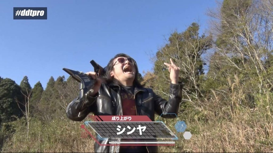 ついに最後の5人目にたどり着いた高木。そこにエレキギターを手にしたいかにも怪しい男が登場。今日一の怪しさに高木が戸惑っていると、その男は「さすらいのメタラー、シンヤだ!」と叫ぶ。シンヤが「俺は今日デビュー戦だからな!」と宣言し高木がうろたえる中、開始のゴング。シンヤはピックを投げつけて奇襲し、エレキギターで殴り掛かるが、高木は間一髪回避する。高木が逆水平を一発放つと、すぐにシンヤはダウン。高木がカバーに入ると、突然6人目の謎の男が現れる。男は「ワシこそが成り上がり四天王の一人、井上象策だ!」と叫んで高笑い。そして「成り上がりに伝わる火炎地獄!」と言って、シンヤと井上が高木に見せつけるようにビッグファイヤー。そして改めて高木を挟み込むように2人同時にビッグファイヤーを放つ。これで高木は大ダメージも、シンヤも自らの火で髪が燃えてしまい大ダメージ。それでも何とかシンヤがカバーに入るが、突如ランボー川村が登場。「EXTREME級のベルトはお前らには渡さねぇぞ!」と叫び名がら井上を撃退。さらにシンヤのエレキギターをマシンガンではじき落とすと、マシンガンで一撃。すぐさま高木がカバーに入ると3カウントを奪取。高木が「なんで俺を助けに!?」とランボーに聞くと、ランボーは「大佐(高木)、こんなやつらにEXTREME級のベルトは渡さないぞー!」と叫ぶ。そして高木がランボーと組んで成り上がり四天王と激突することに。