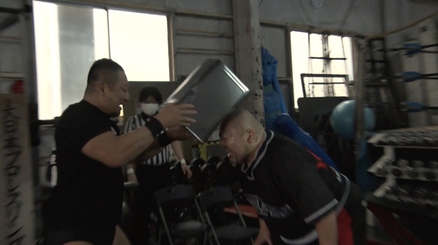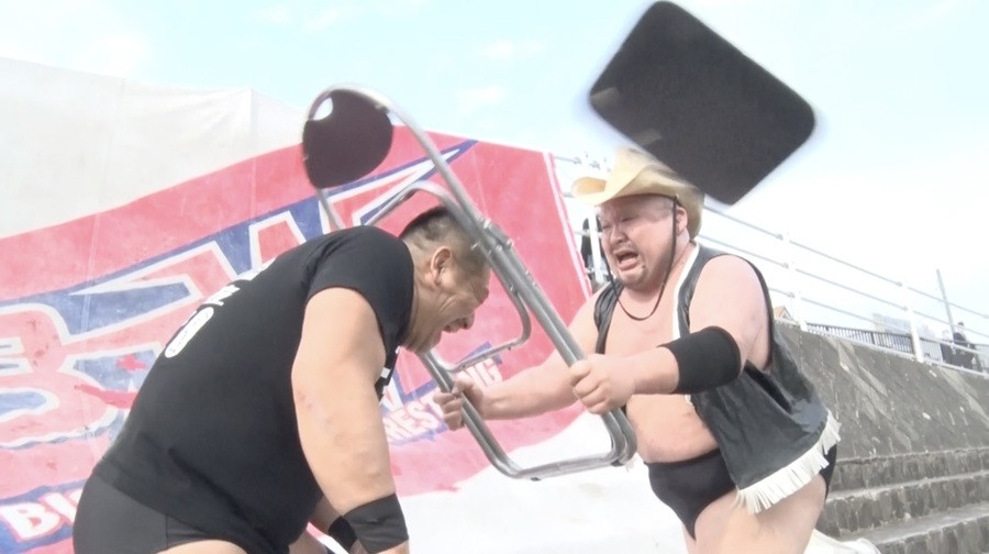 アブドーラ・小林<横浜代表>と高木三四郎<世田谷代表>の一戦は、大日本プロレス道場訪問のようなまったりとした展開からスタートするも、戦場は次第に道場近くの河原へ。桜舞い散る中のイスチャンバラから、小林がバカチンガー・エルボーを決め3カウント。準決勝へと駒を進めた。