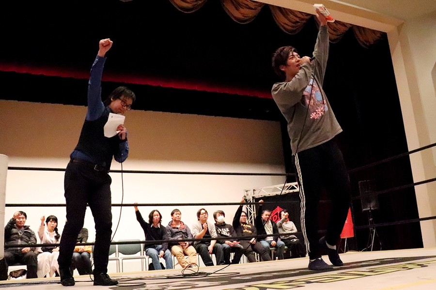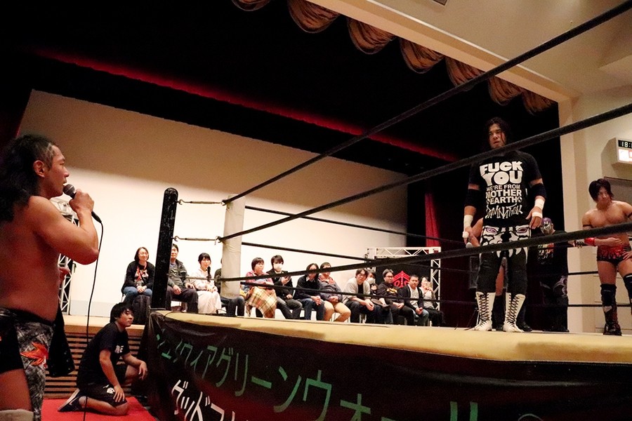 高梨 今日のリングの下で言ったことがすべてだ。みんな思ってて薄々勘づいてて言えなかったことだよ。DAMNATIONに入って高尾の目は死んでるんじゃねえか? あれは少なくともタイトル防衛記録をつくるタッグパートナーが一緒にいるヤツの目じゃねえよ。全然輝いてねえよ。俺はクリスとこの先をずーっと見えるんだ。全然ワクワクしてくるよ。ああやりたい、こうやりたい……どんどん先の展望が浮かんでくる。けどなあ、佐々木は考えてるっていうけど、アイツは毎晩呑んだくれて何も考えてない口だけの野郎だよ。高尾にいたってはここにいるのは違うんじゃねえか? そういうのを無言のアピールとして感じたよ。そして明日? 佐々木とやるかもしれねえけど、当日、高尾がどういうツラして上がってくるのか楽しみだよ。クリスがいるんだ。俺には負ける要素はねえ。以上。