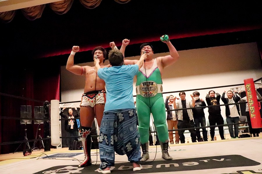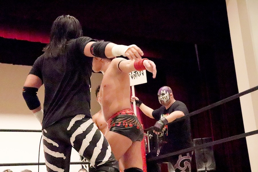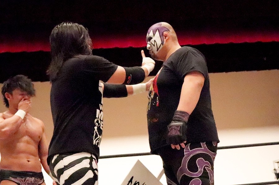 竹下 心地よかったですよ。僕が苦手とする部分ではない。坂井さんとは公私ともによくしてますので。今日が何周年興行とかメモリアルな大会でないにしろ、いいタイミングでシングルマッチができたなと。マッスル坂井とはマッスル(大家帝国主催興行)でシングルマッチをやっているんですけど、スーパー・ササダンゴ・マシンとは初シングルで、初煽りパワポられだったので。スーパー・ササダンゴ・マシンの湯船にどっぷり浸かりました。