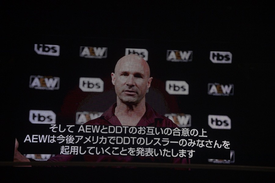 ダニエルズは「AEWは今後米国でDDTの皆さんを起用していくことを発表します。DDTの素晴らしい選手たちを米国のプロレスファンに紹介することが楽しみで待ちきれないです」とのメッセージが流された。