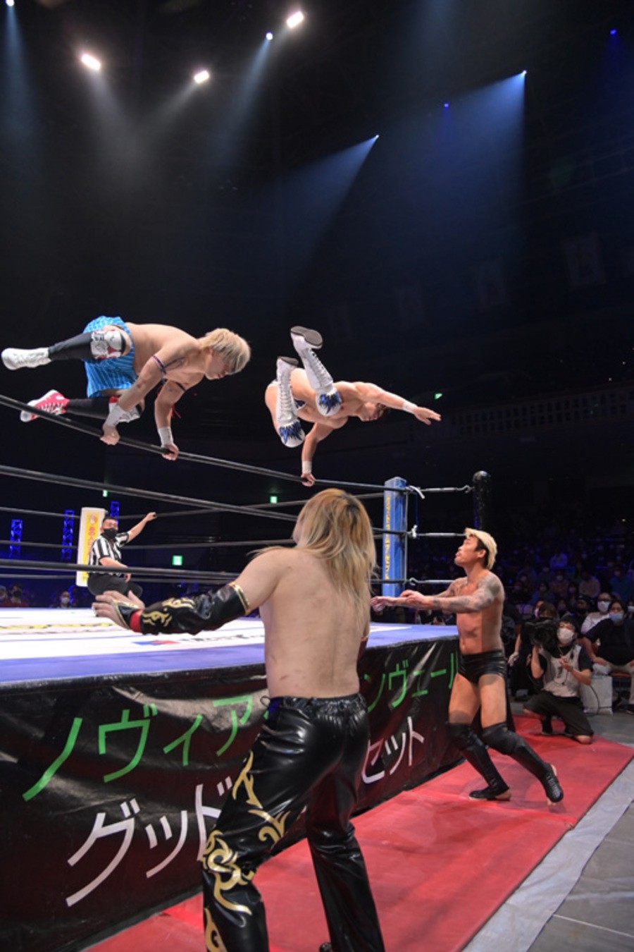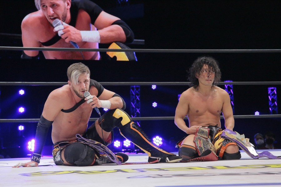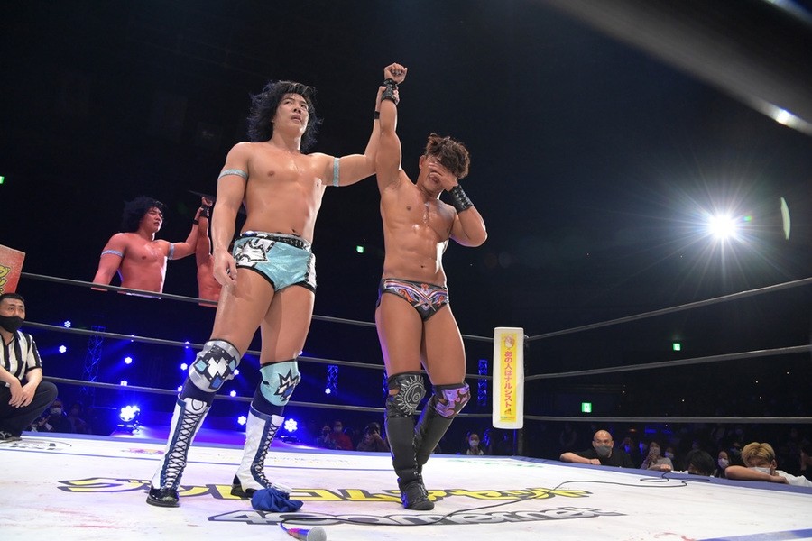 HARASHIMA組は先に開催されたタッグリーグ戦で優勝し、大会前に返上した同王座への返り咲きに成功。公式戦で唯一敗れたCDKを初防衛戦の対戦相手に指名した。