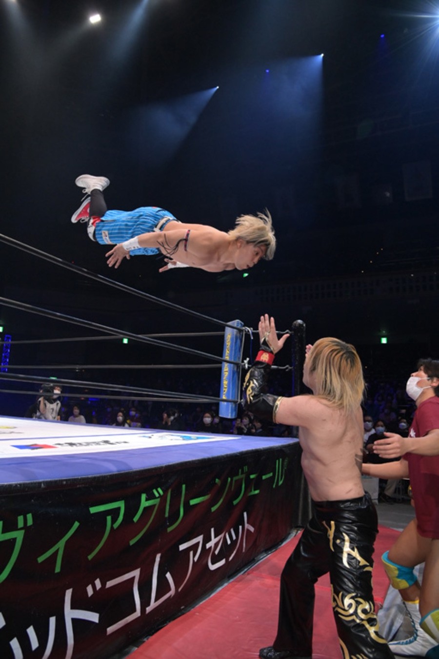 バックステージでマイケルは「昔から何か橋渡しができればと思って。こうやって少しでも団体の役に立てたのは、ケニー(オメガ)なしではあり得ないことだった。これからDDTのみんなを世界に紹介できればいいなと、僕も全力でサポートします。以前、単発で竹下(幸之介)とかに出ていただいたんですけど、今回はDDTグループ全体が対象。DDT、東京女子、全体にAEWが合意してくれた」と説明した。