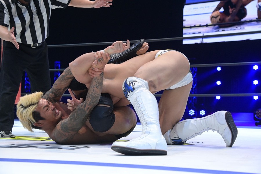 試合は一進一退の白熱の勝負となったが、15分過ぎ、吉村がクリスに払い腰、ラリアットで怒涛の攻め。これをなんとかしのいだクリスは吉村をオクトパス・ストレッチに捕らえると、グラウンドに移行。ここで、同時に足まで極めてハウス・ピアノ・デスで絞め上げると、吉村がたまらずギブアップを喫した。