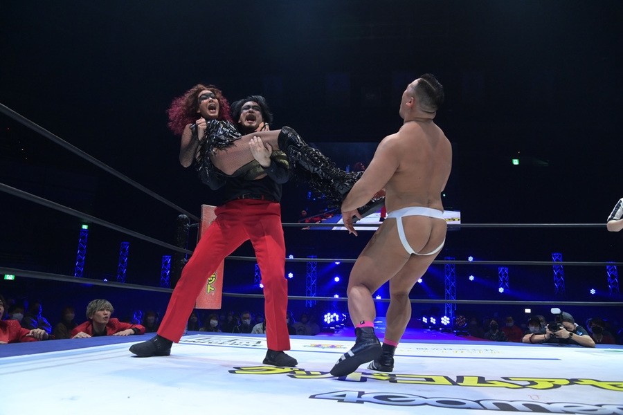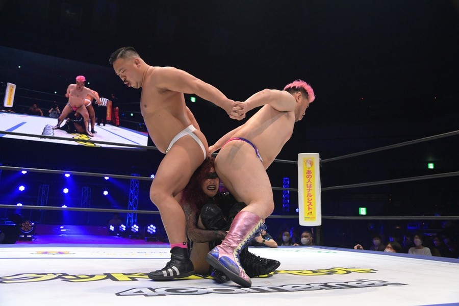 小田井、彰人とトリオを結成したLiLiCoはDDTのハレンチ軍団フェロモンズ(男色“ダンディ”ディーノ、飯野“セクシー”雄貴、今成"ファンタスティック"夢人)と対戦。