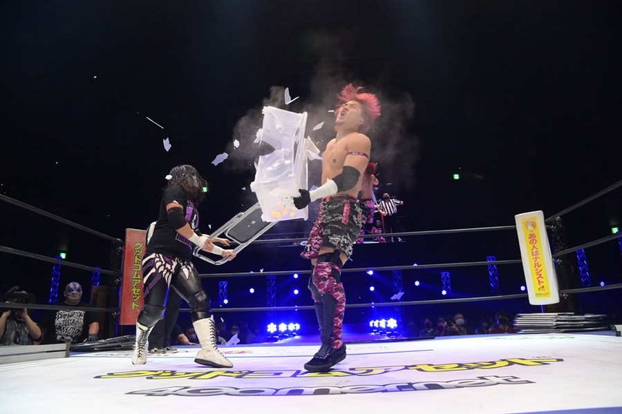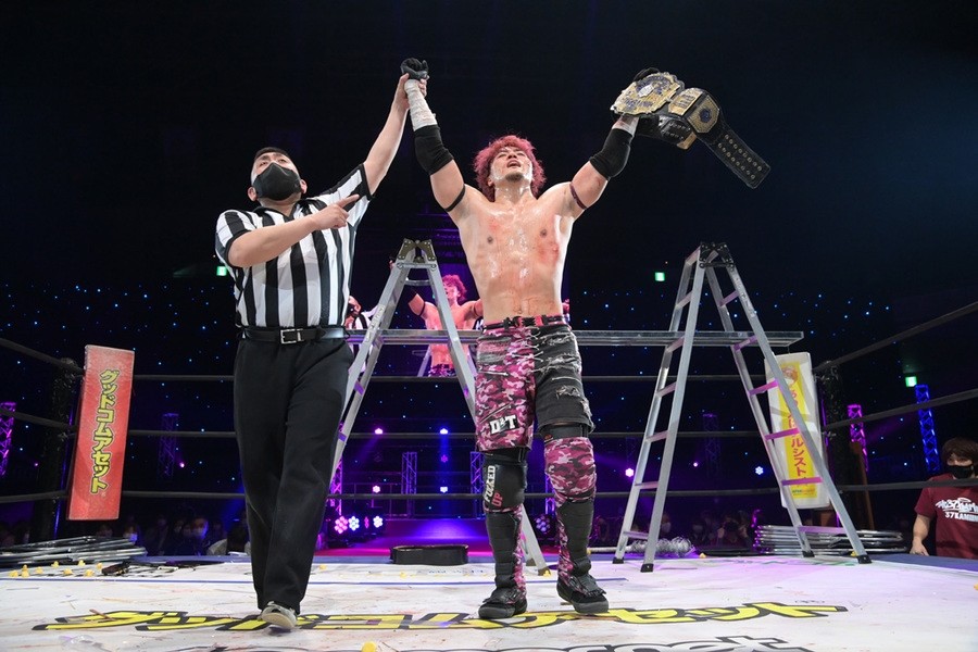 MAOが佐々木大輔(王者)、葛西純(挑戦者)とのハードコア3WAY戦を制して、DDT UNIVERSAL選手権を奪取。DDTと米AEWとの2団体所属の中澤マイケルのアピールを受け、同27日の東京・後楽園ホールで初防衛戦に臨むことが決定した。