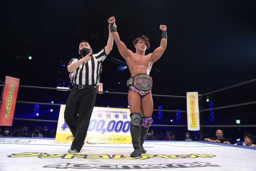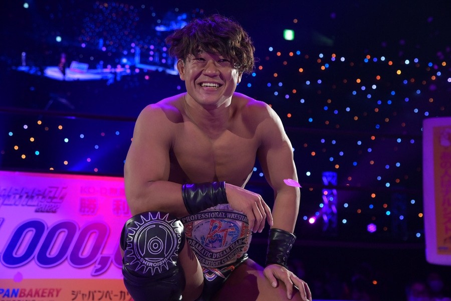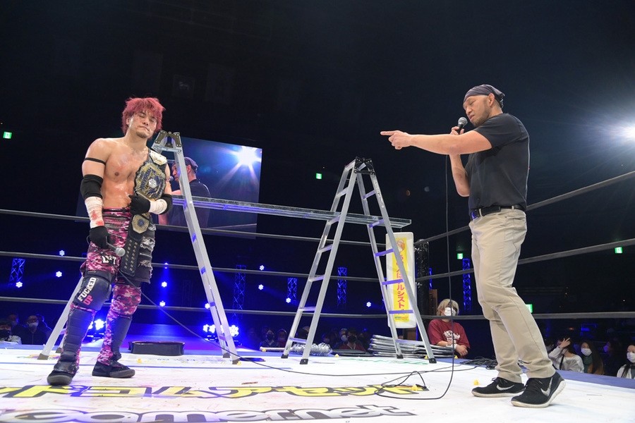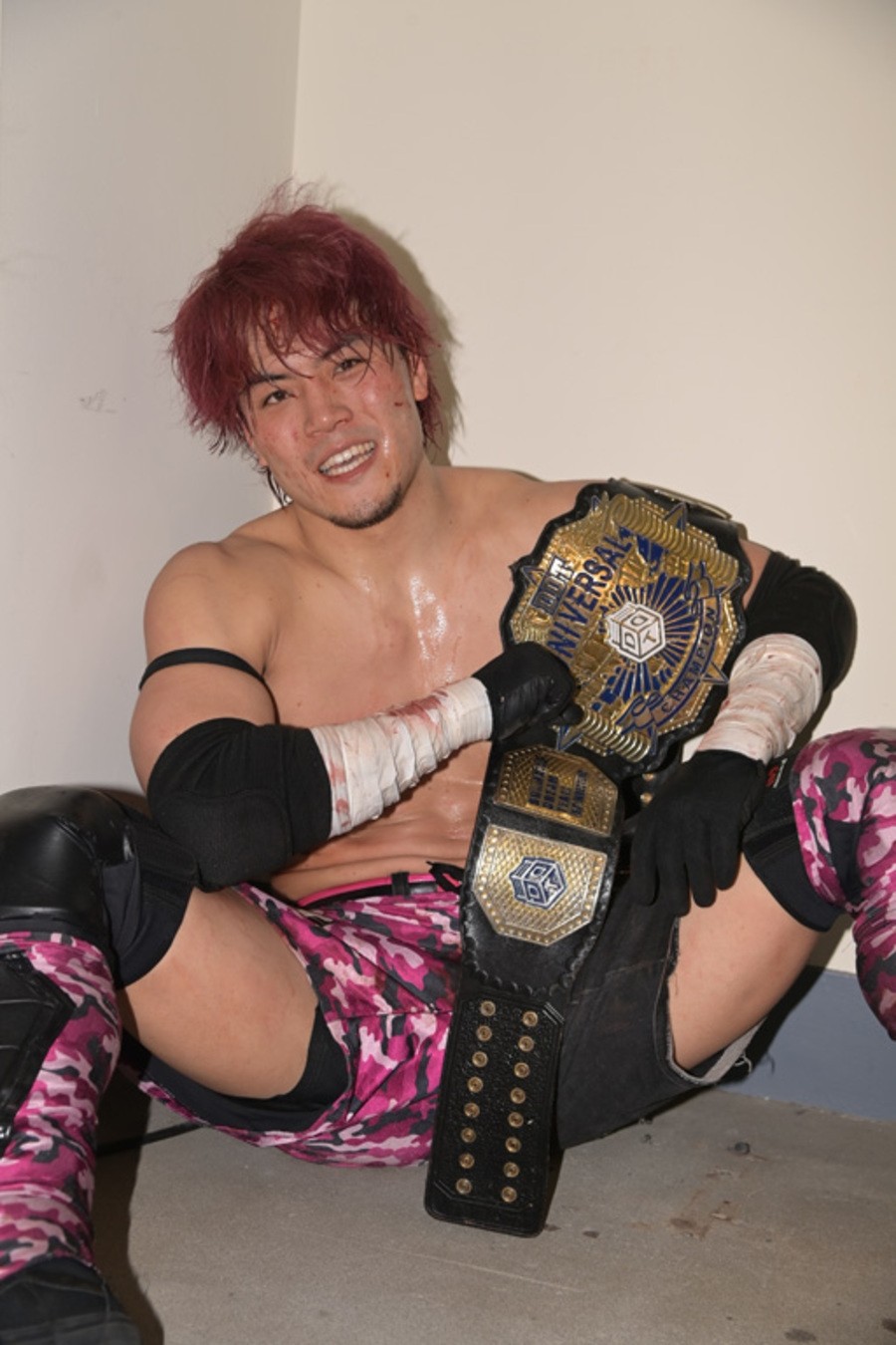 DDT初進出となる5月1日横浜武道館で初防衛戦を迎えるが、挑戦者について「誰でもいいです。挑戦したいヤツ。俺こそがDDTを背負う覚悟があるという人間がいれば、どんどん挑戦して、名乗りを挙げてきてほしいなと思います」と話した。