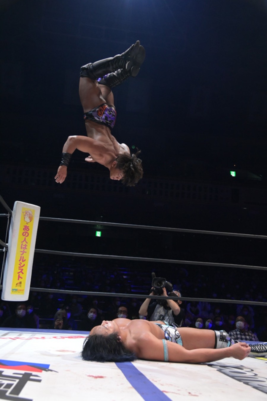 赤井は「雪妃選手には雪妃選手の歴史があって。私には私の歴史があって。そこが重なったときにプロレスって試合になるから。2人とも背負ってるものは違うけど、見てる方向は大きく言えば同じだと思うので。体は痛かったんですけど、私と雪妃にしかできない試合になったと感じています」とコメント。