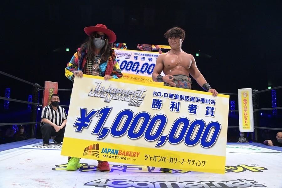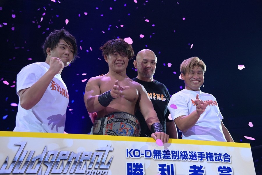 3月20日、東京・両国国技館で「Judgement2022~DDT旗揚げ25周年記念大会~」が行われ、メインイベントでは遠藤哲哉が46分超えの死闘を制し、ライバル竹下幸之介を破り、1年2カ月ぶりに同王座を奪還した。