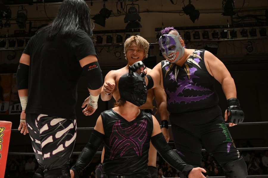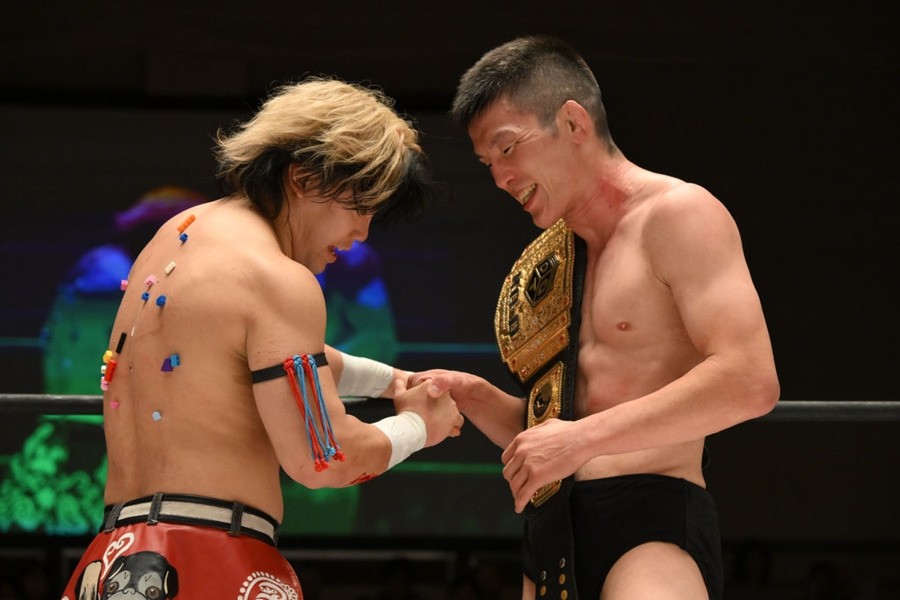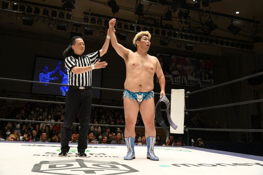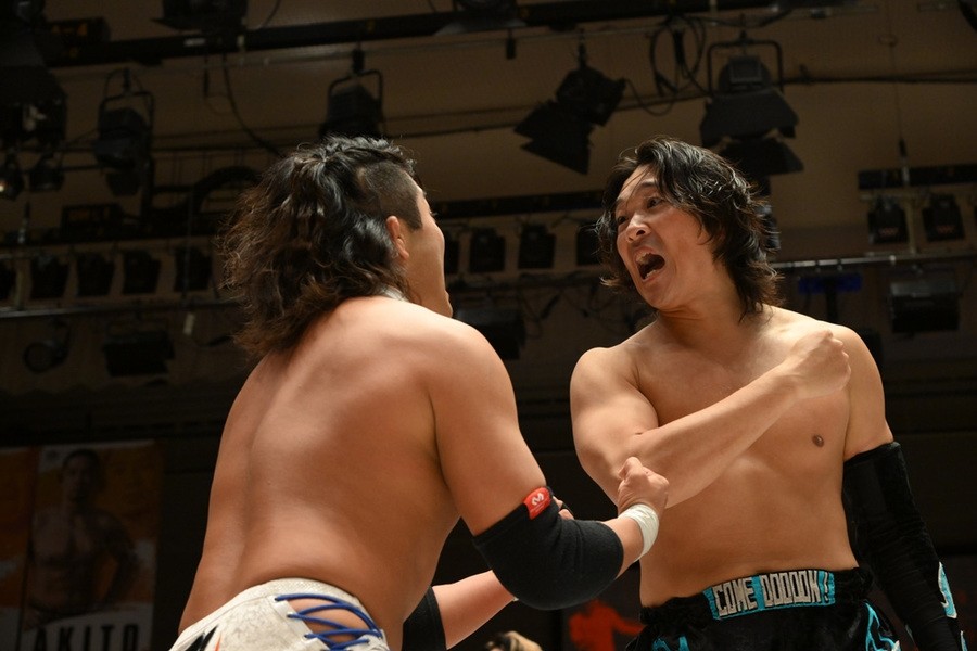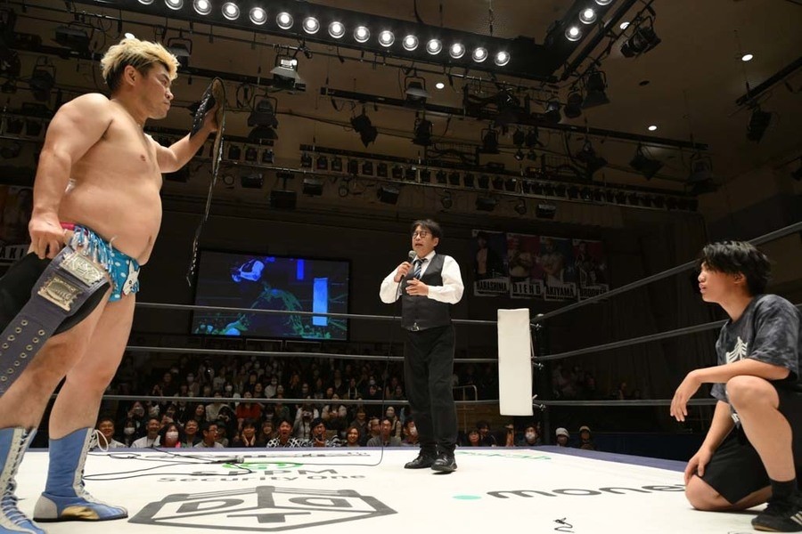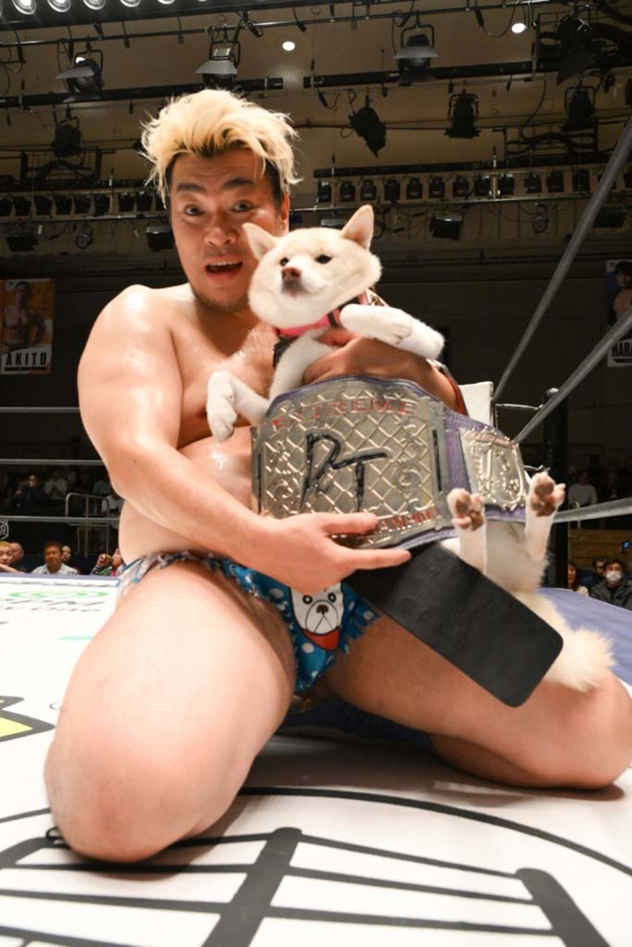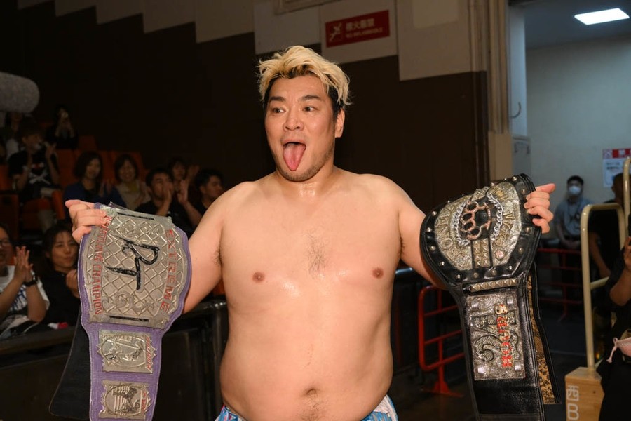 王座を守れなかった彰人は「見ての通り、丸裸になりました。もう僕の腰にはベルトもない。英語だけは言わないようにと思って戦っていたんですけど、これに関してはちょっとかけに負けました。EXTREMEがなくなっても、自分を表現する場をつくっていきます。ただEXTREMEは僕にとって一番大事なベルトなので、また奪い返そうと思います。男色ディーノに獲られたというのが、自分のなかで物語が始まるかなって思います」と前を向いた。