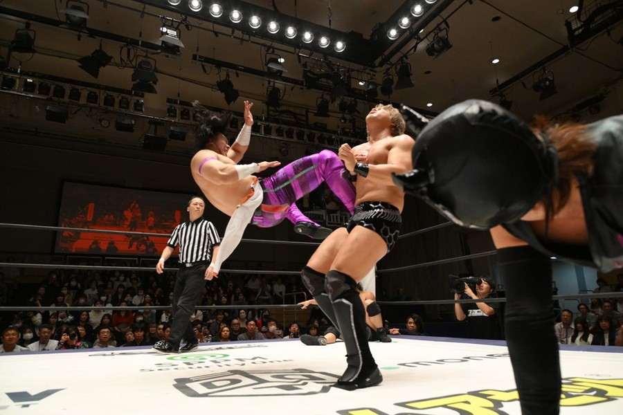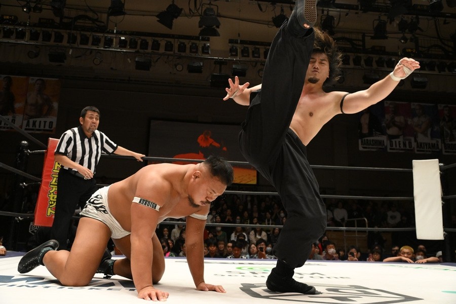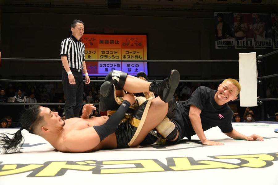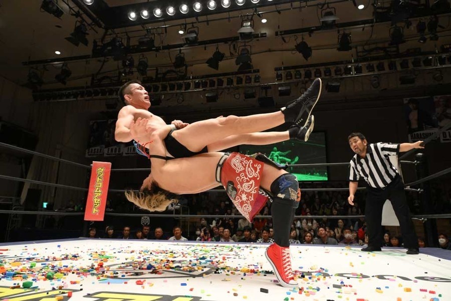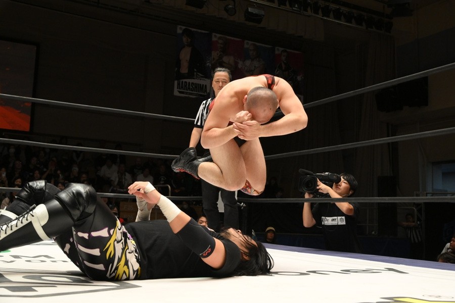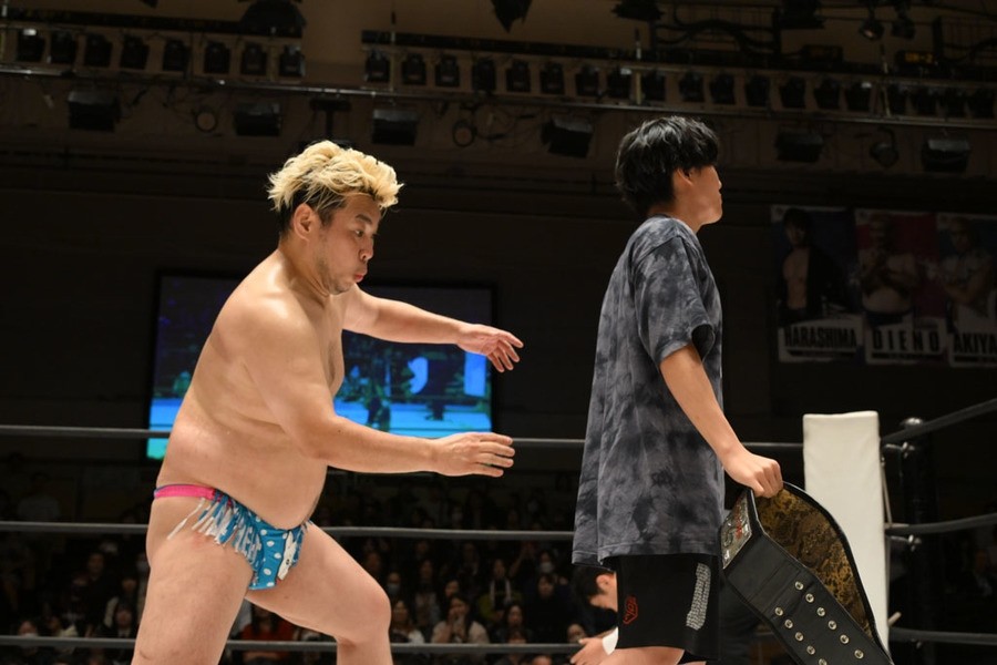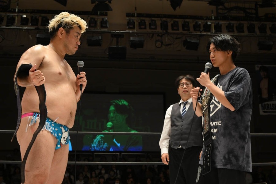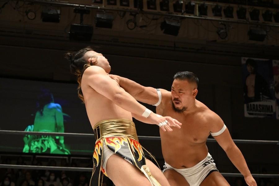 青木とHARASHIMAは過去に3回シングルマッチで戦って、青木の2勝1敗。2020年3月11日、さいたまスーパーアリーナでのDDT EXTREME王座戦以来、4年7カ月ぶりの一騎打ちとなった。