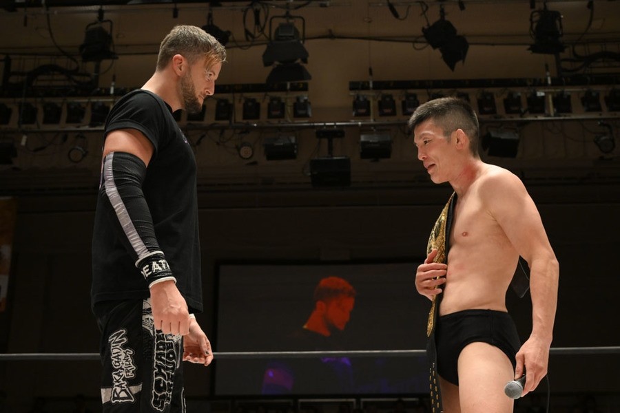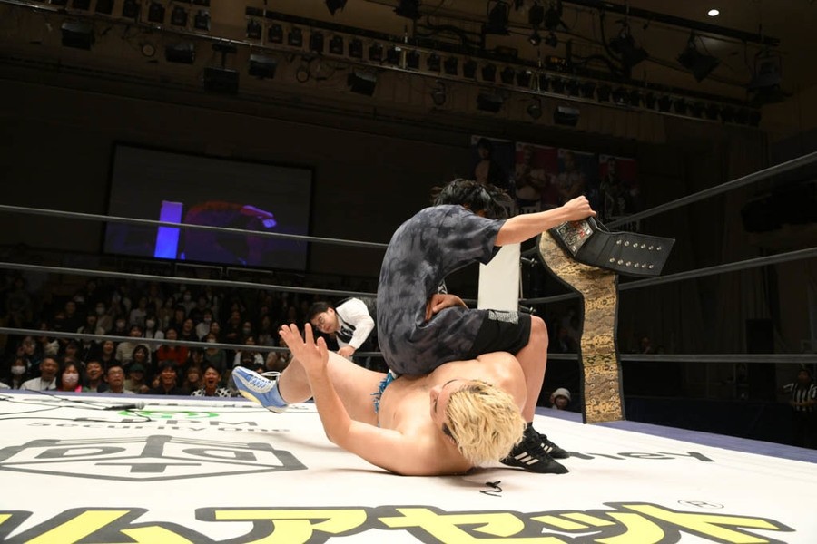 前DDT UNIVERSAL王者のMAOが現王者の飯野雄貴に「いつでもどこでも挑戦権」を行使し、約1カ月半ぶりに王座奪還に成功した。