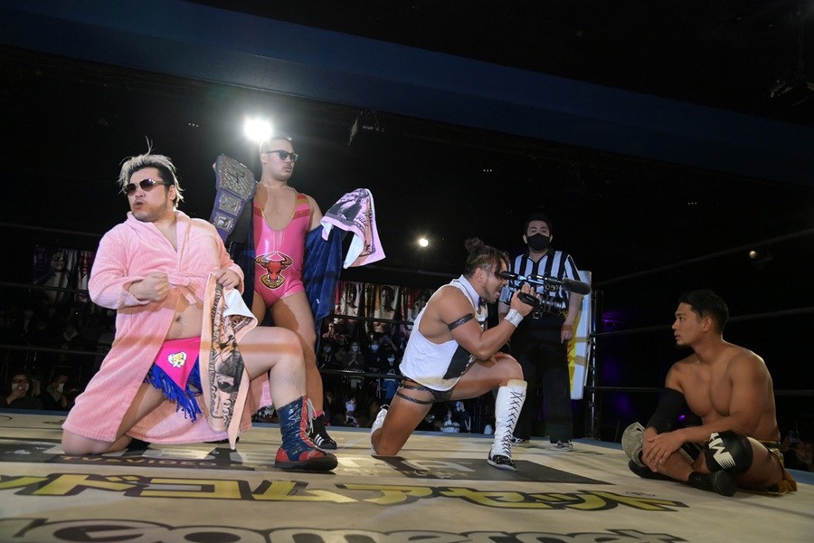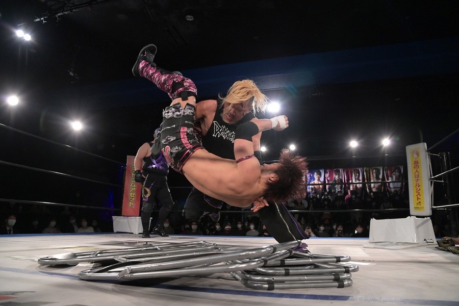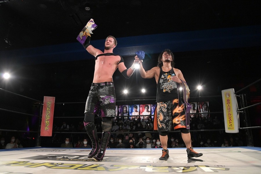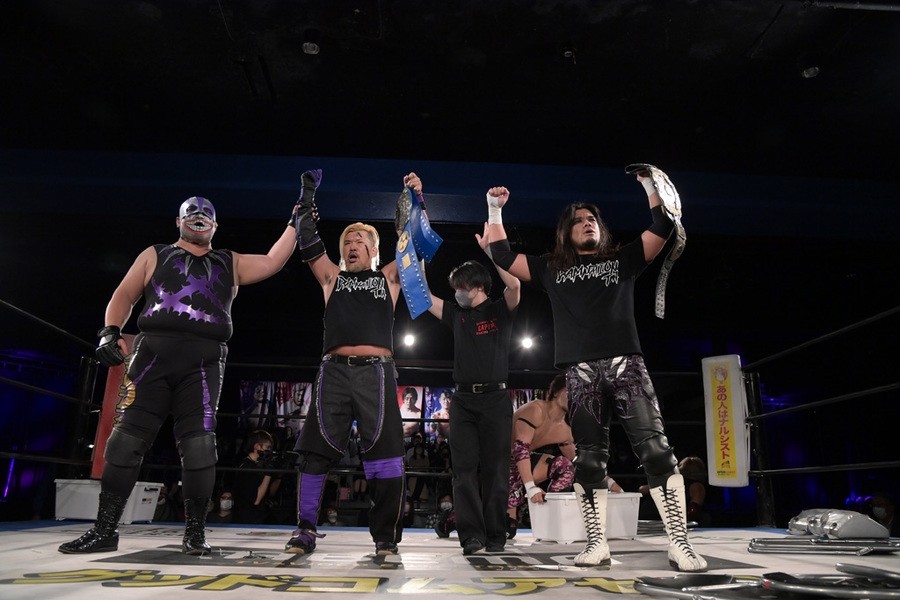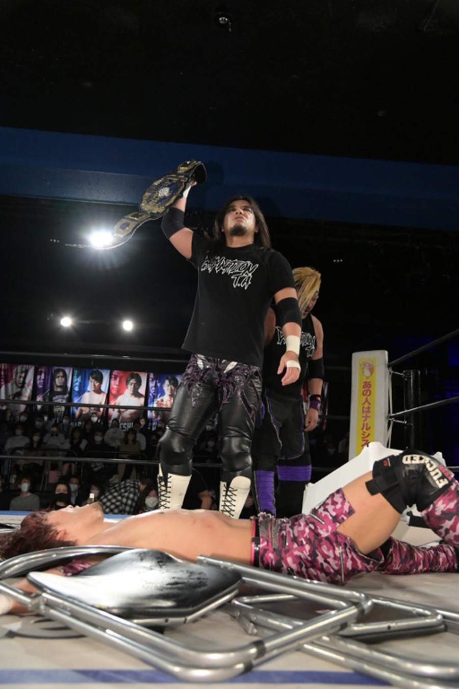 バックステージでクリスは「DISASTER BOXはDDTに作られたチーム。俺らは兄弟のように毎日リングの外でも一緒にいる。だから今日はCDKが勝った。戦うときはいつもタカナシさんを意識してるし、毎日24時間意識して戦ってる」とベルト獲りに自信を見せた。