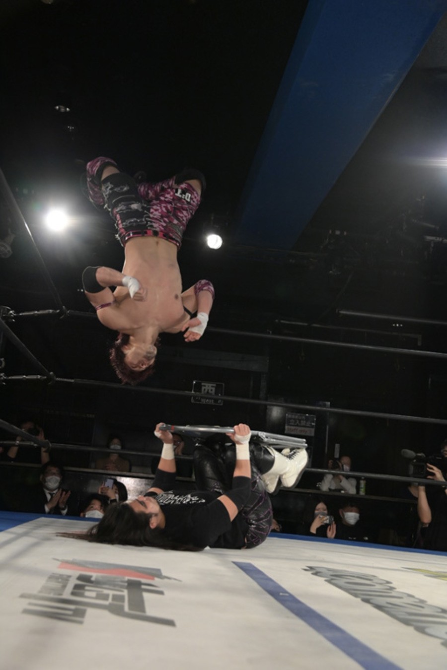 HARASHIMAは「クリスとシングル、D王でいかれてるから、きっちりやり返して勢いつけたかったけど。何で高梨がいるんだ? ちょくちょくちょっかい出されたよ。両国でガッチリ、あの2人をぶっ倒します」と気を取り直していた。