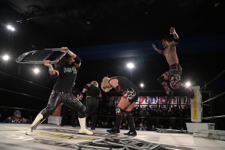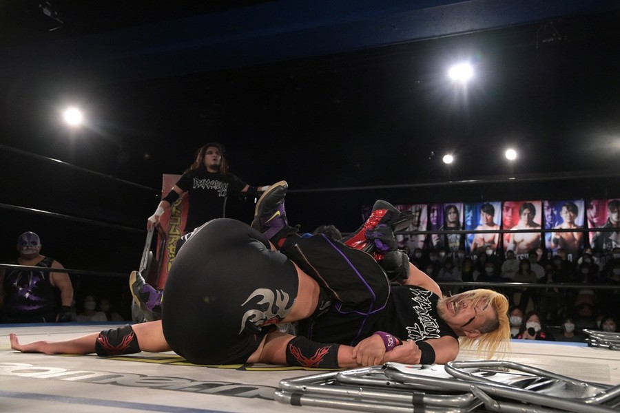 試合後、「反則ばっかしやがって。許さない」と言うMAOに対し、藤田がイス盛りの上にボディスラム。佐々木がイスを持ってダイビング・エルボーを食らわせると、MAOは大の字に。