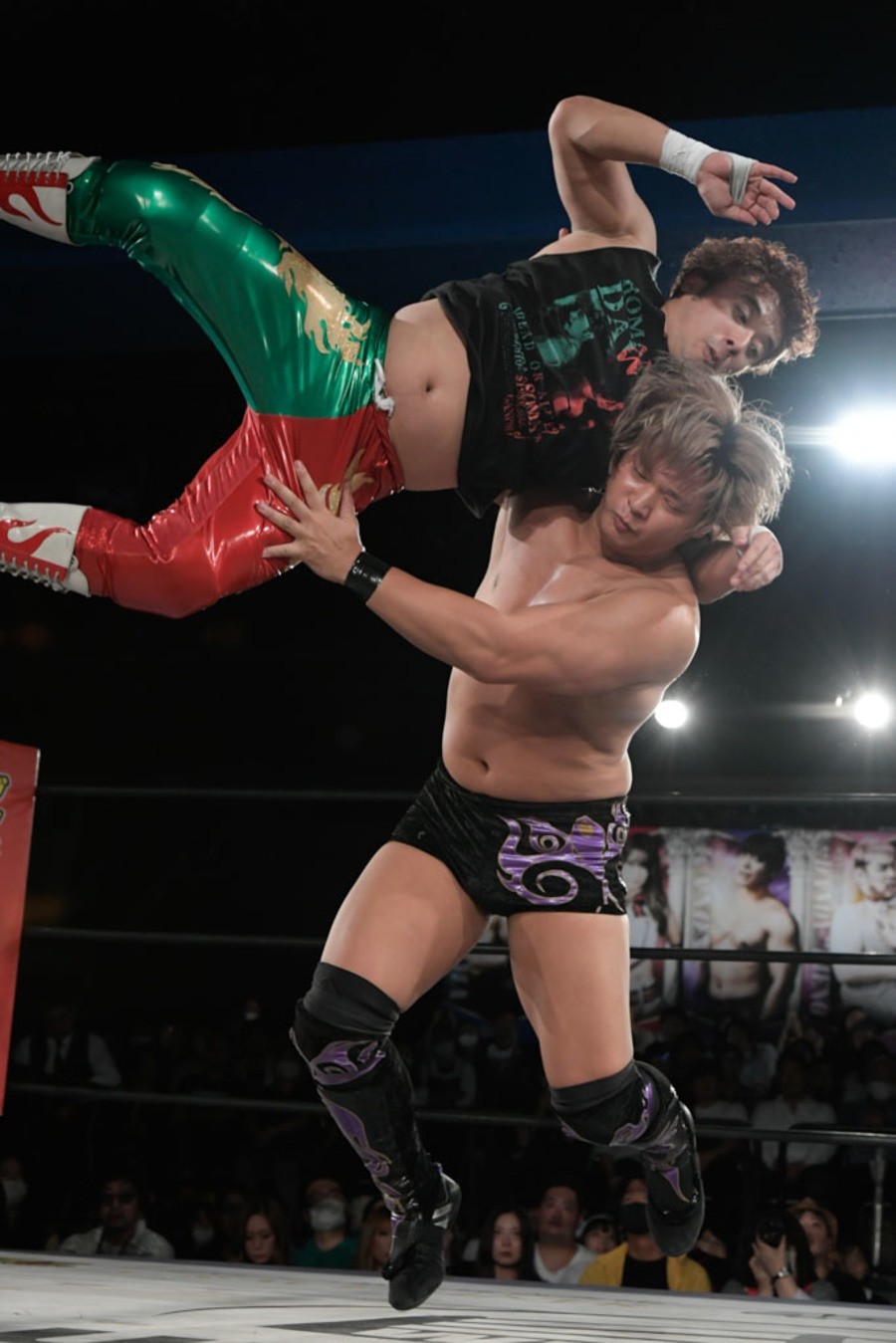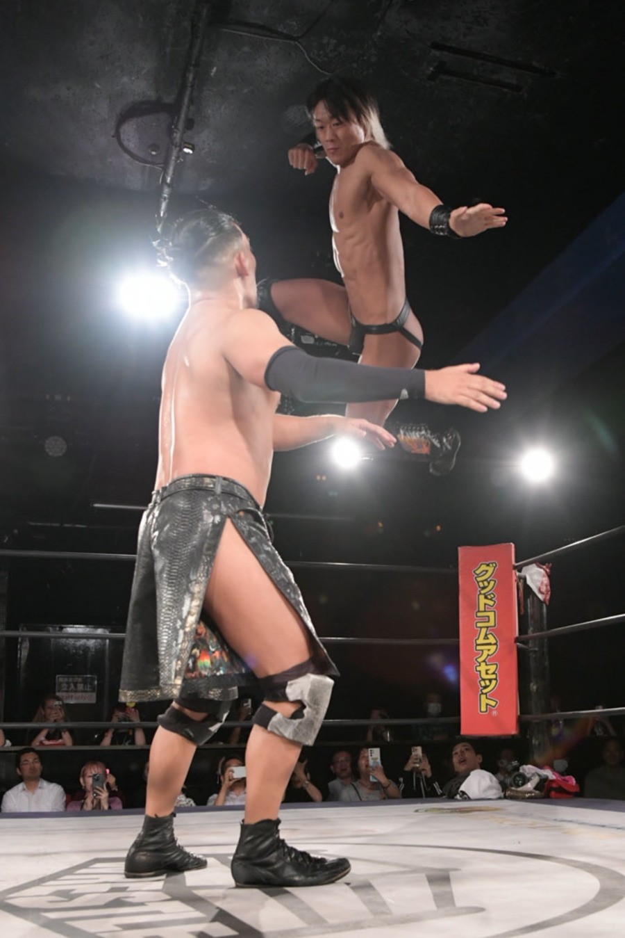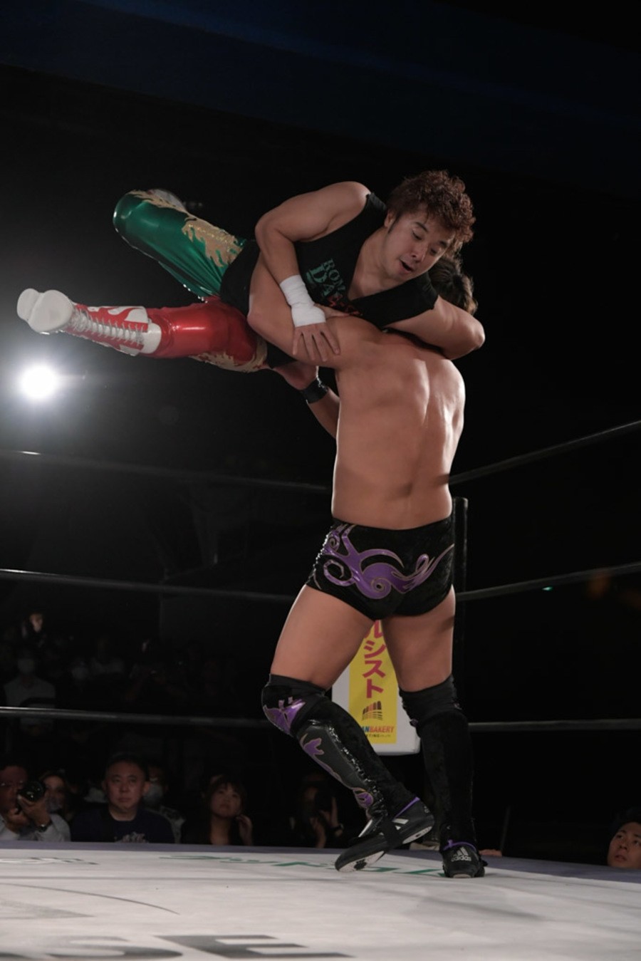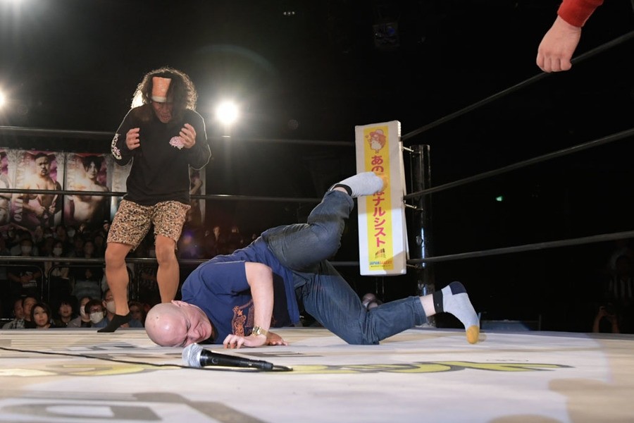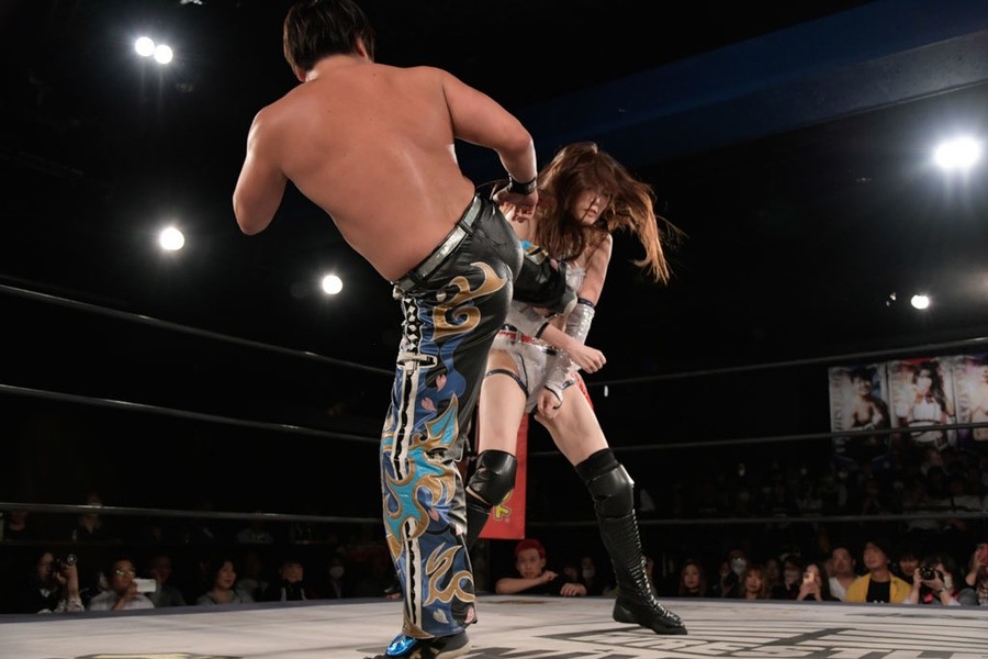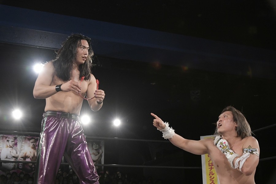 序盤、小柄な翔太は王者組のパワーで劣勢に回ることも多かったが、KANONに起死回生のスイングDDTを決めると、トペを発射。高尾が藤田に雪崩式フランケンシュタイナー、続けて翔太がフロッグスプラッシュを見舞うも、セコンドの佐々木大輔がレフェリーの足を引っ張って阻止。藤田は急所打ちからSAYONARAを繰り出すも、高尾がカット。最後は一瞬の隙を突いた翔太が藤田を雁之助クラッチで丸め込んで3カウントを奪った。