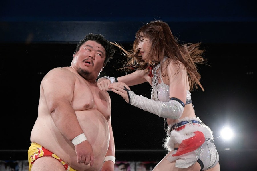 すると、ここでクリス・ブルックスが登場し、「ROMANCE DAWN、すごかったね。私、覚えてる。1年前のガンプロ大田区大会。CDKvsROMANCE DAWN。すごかった。ベルト挑戦したいけど、次のタイトルマッチは両国でいいんじゃない? でも、その日、私は忙しい。仲良しの挑戦チームいます」と言うと、高梨とアントンが現れ、クリスが挑戦を後押し。ROMANCE DAWNに異存はなく、11・12両国での王座戦が決定した。