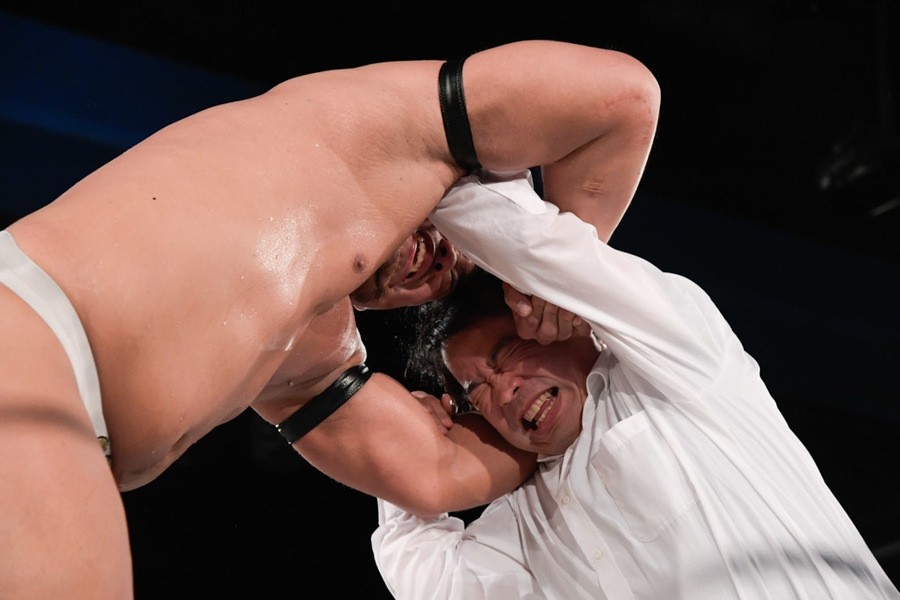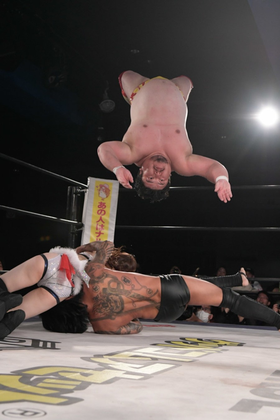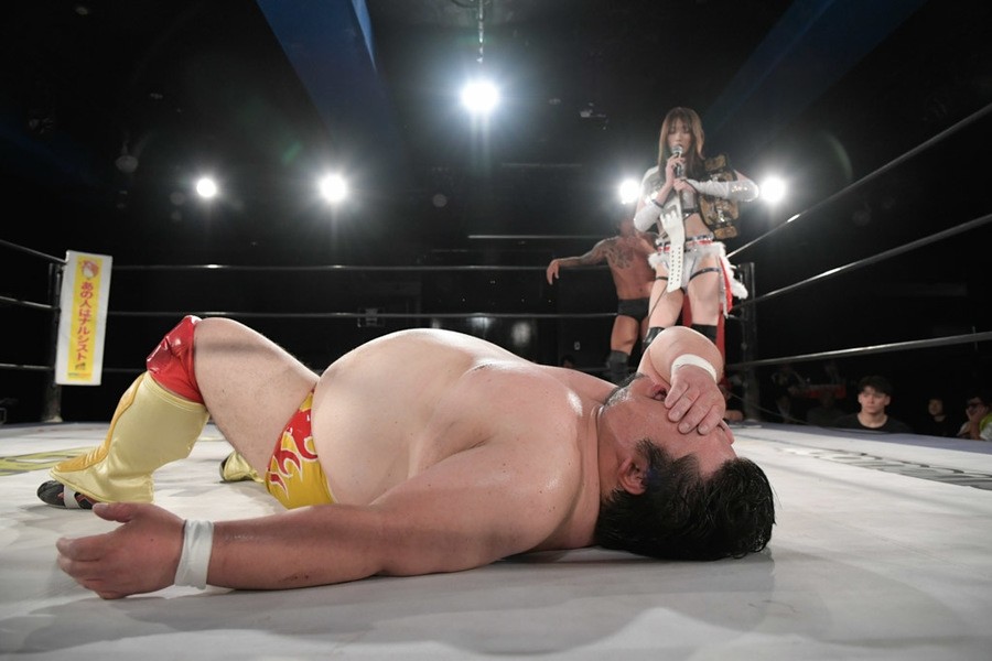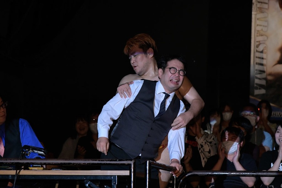 この事態に、飯野が「やり足りねぇ! 今林、試合やってくれ」と要求し、飯野と今林GMによる緊急決定試合に突入。今林GMもスタナー、STFで奮戦も、飯野がSTP(ステップオーバー・トーホールド・ウィズ・フェロモン)で秒殺。