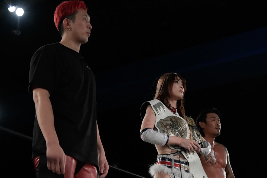 彰人は「指名してくれたからにはしっかりベルトを奪いにいきます。赤井さんの美学的にはベルトを持ったまま引退するのが強さであり。だけど残された僕らは僕らの美学でベルトを獲って、未来につなげていきたい」。高木は「指名していただいたのは光栄なこと。だけど北の大地で、6人タッグタイトルいただきます」。大石は「北の大地で、この3人でベルト獲ったら、なかなかのドラマチックドリームじゃないですか」と意気込んだ。