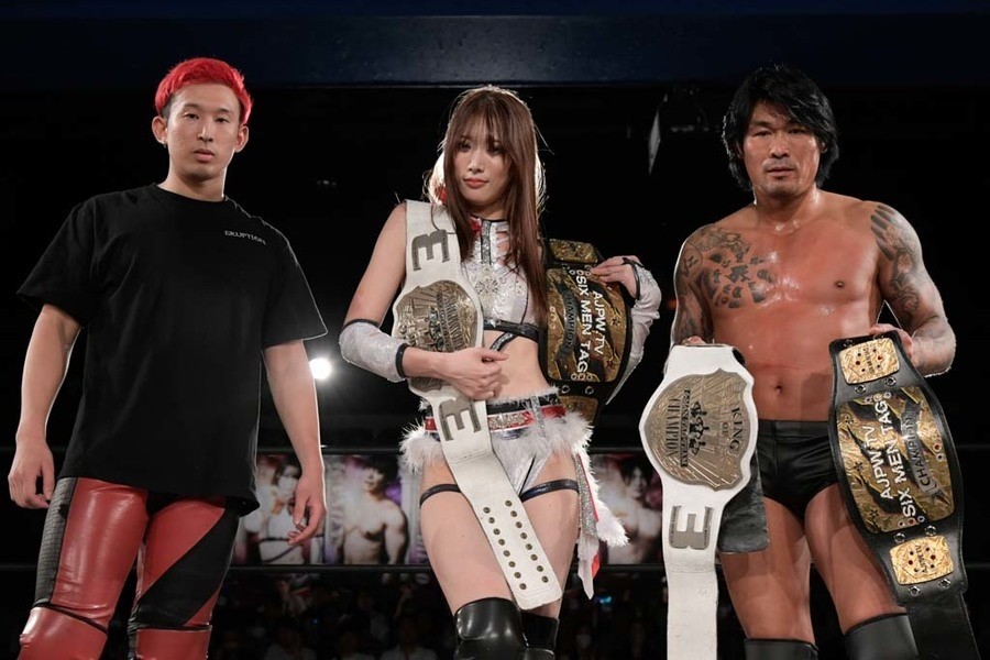 Eruption(坂口征夫、赤井沙希、岡谷英樹)が持つKO-D6人タッグ王座に、10・15サッポロ・イーワン・スタジアムで高木三四郎&彰人&大石真翔が挑むことが決まった。